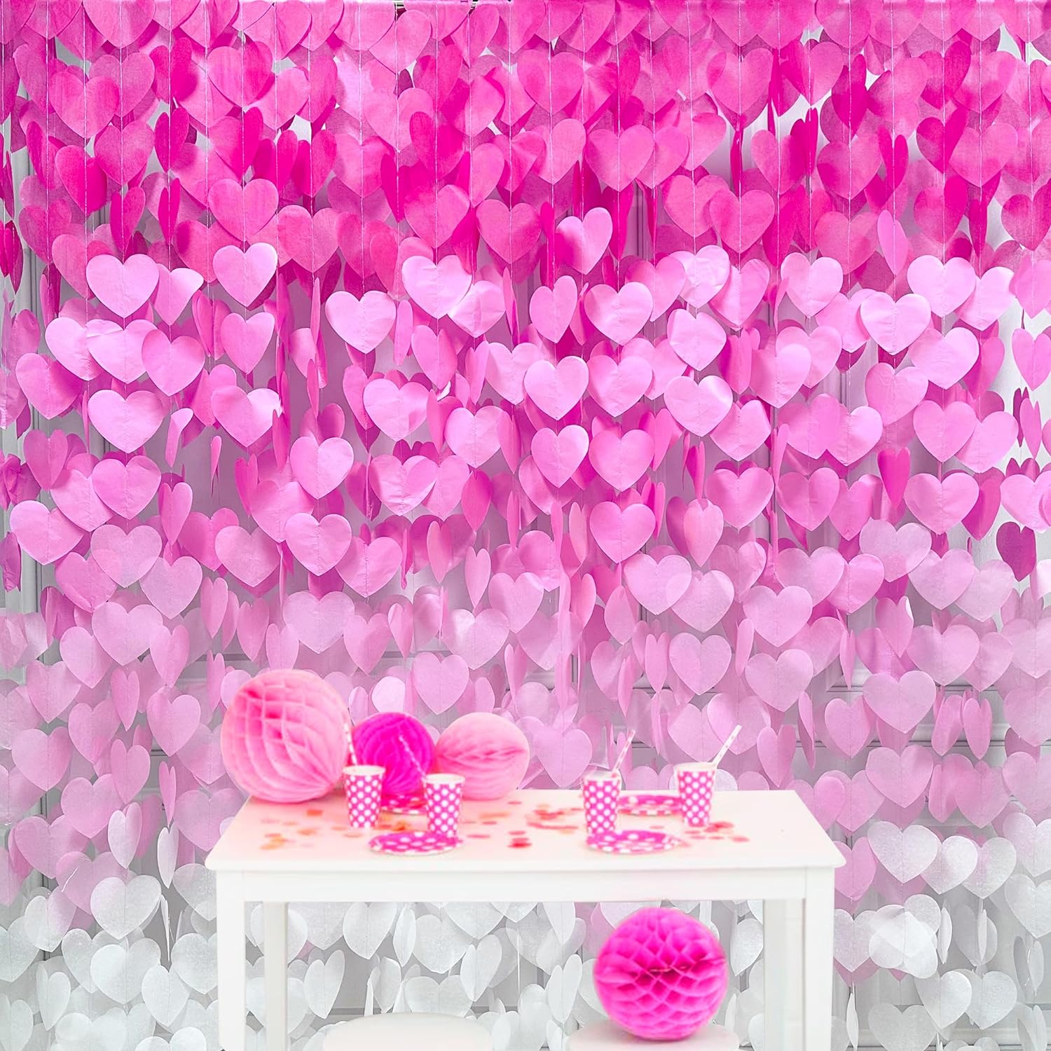 205 Ft Hot Pink Party Decorations Ombre Pink White Heart Backdrop Streamer Tissue Paper Heart Hanging Garland for Birthday Bachelorette Valentines Day Wedding Bridal Shower Engagement Party Supplie
