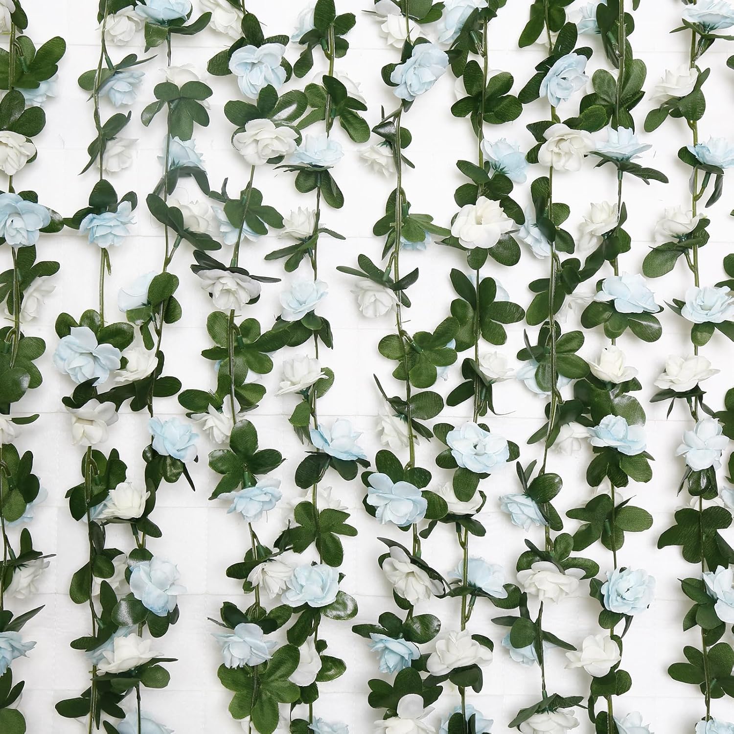 • Packaging: Includes 12 artificial flower garland, each with 45 light blue silk roses and 45 leaves