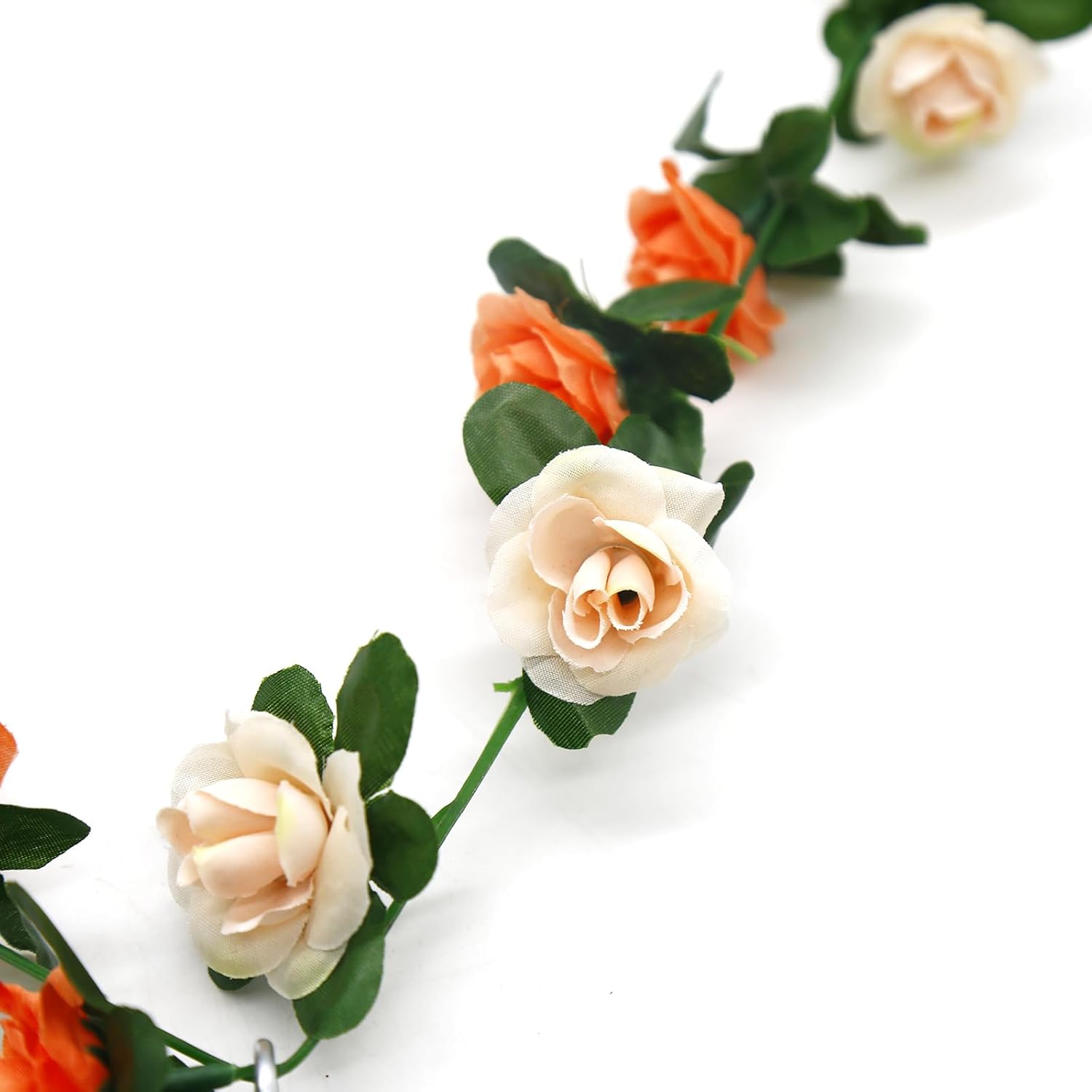 • Material: Rose floral garland is handmade from silk and plastic. The vine is soft and brightly colored, and can be bent, cut, and hung as needed