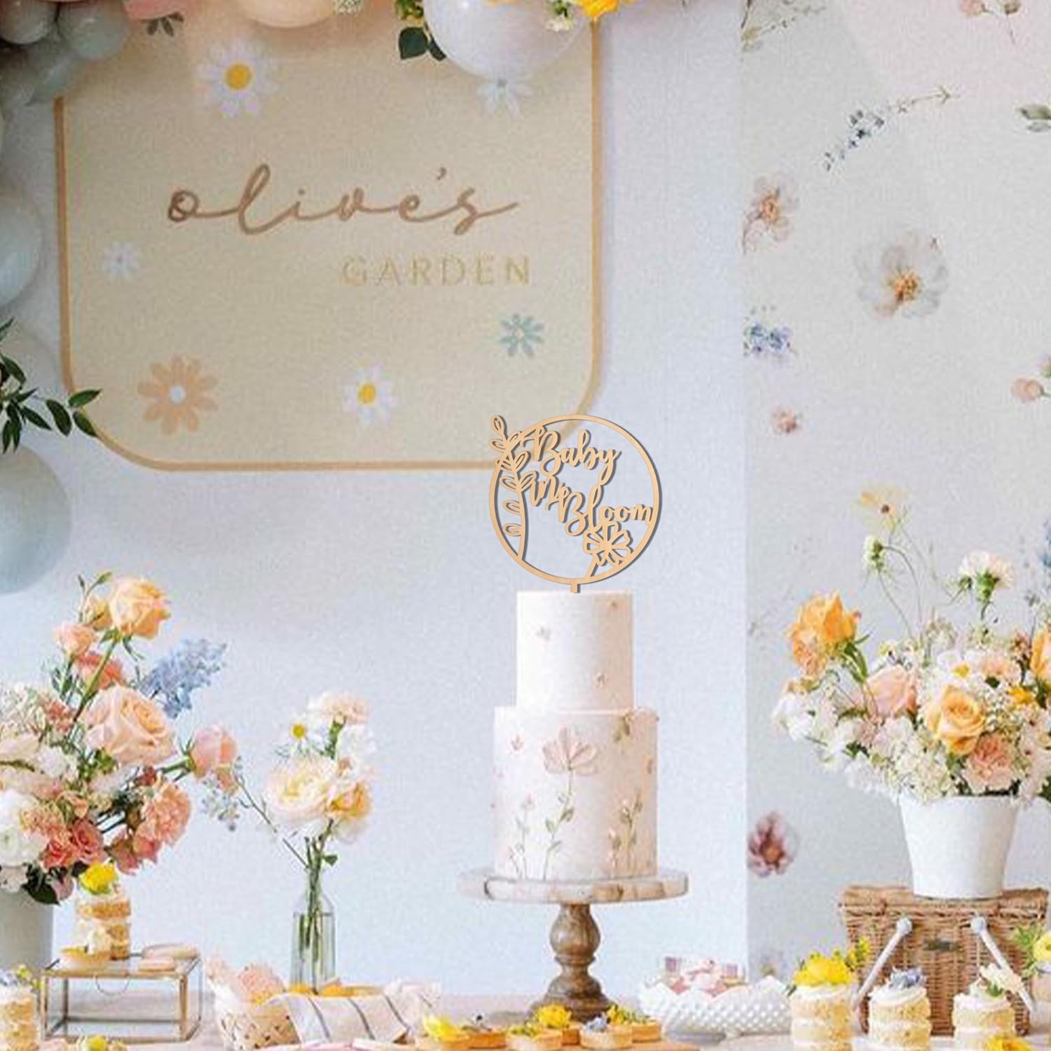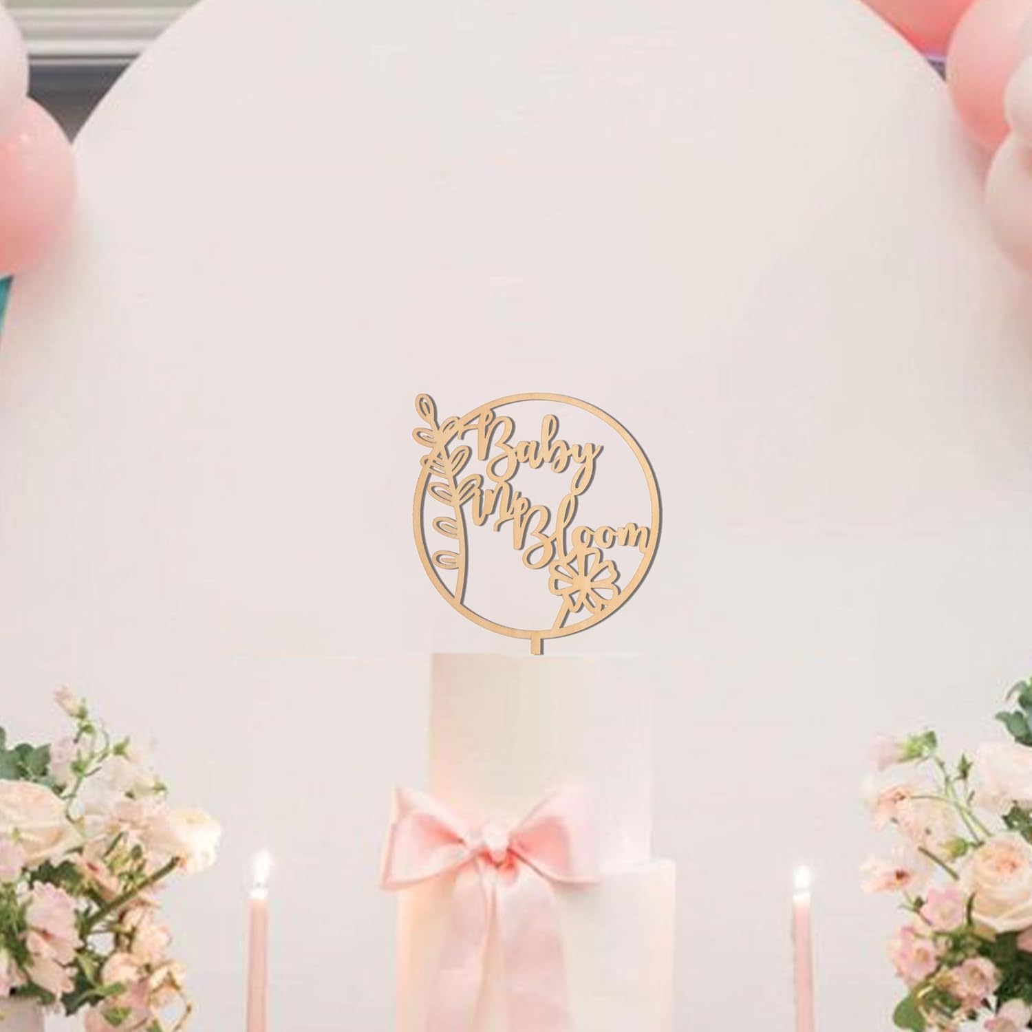 Baby In Bloom Cake Topper - Baby Shower Party Supplies,Pregnancy Reveal Cake Topper,Gender Reveal Decor