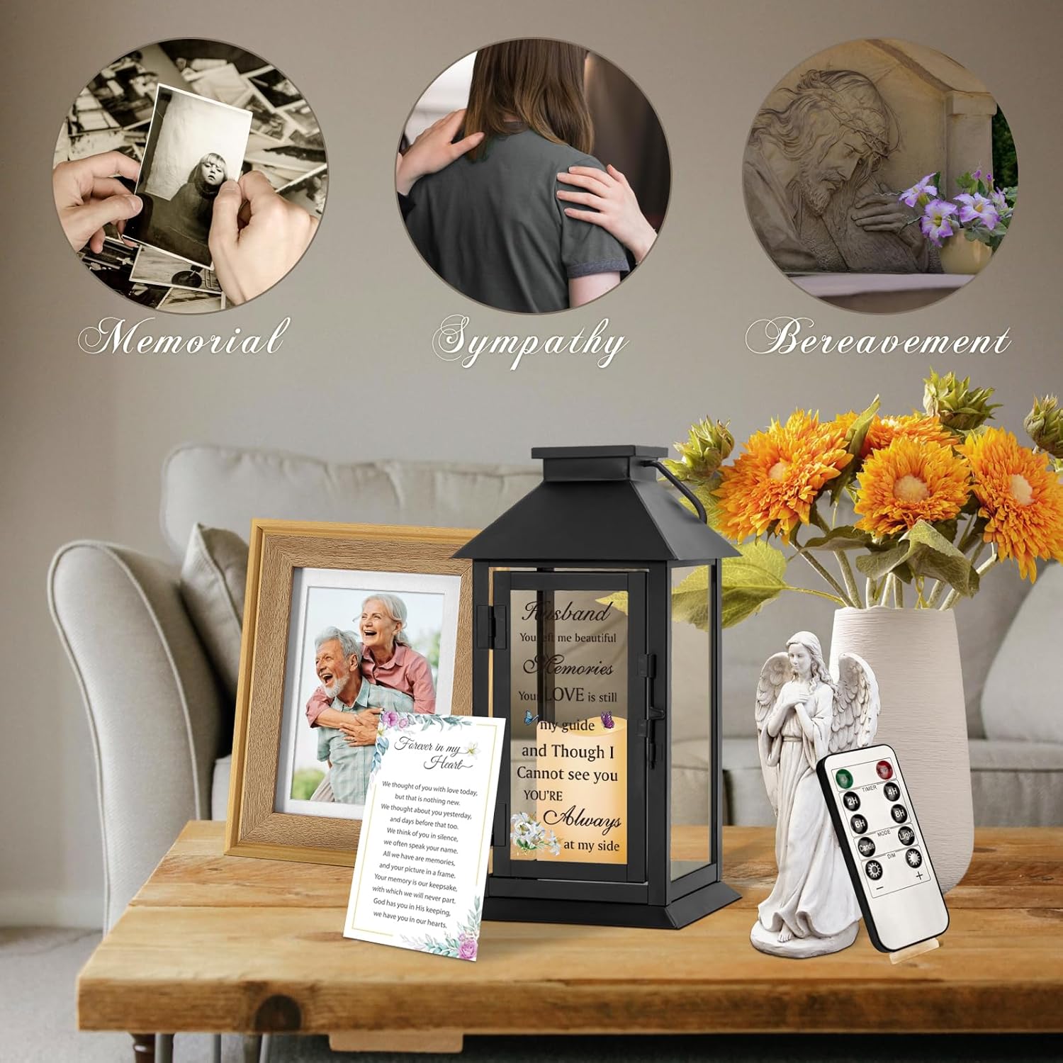 Memorial Gift for Loss of Husband Memorial Lantern for Loss of Husband Sympathy Gift Remembrance Gifts Bereavement Gifts for Loss of Husband Sympathy Lantern with LED Candle