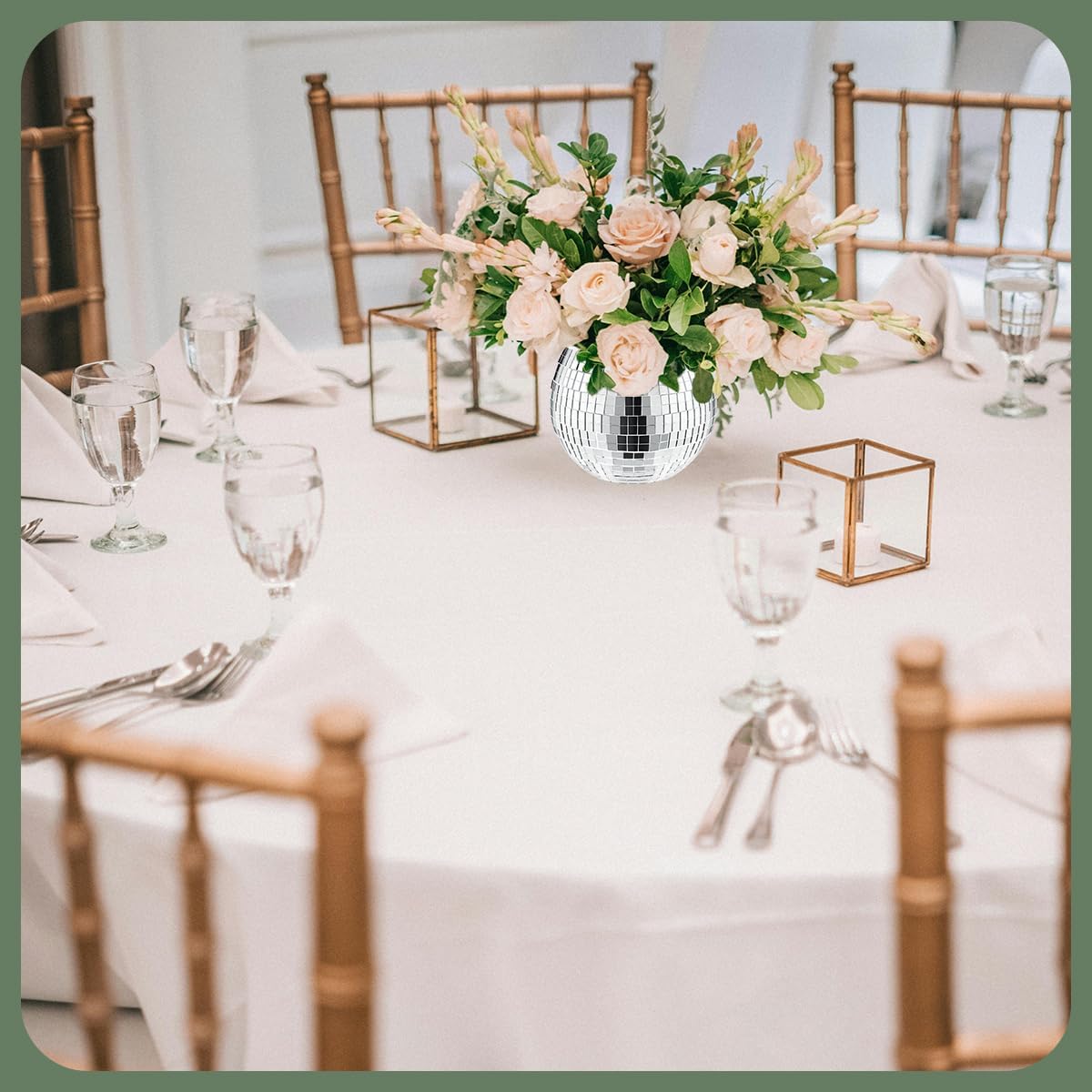 6 Pcs Disco Vase, Silver Mirror Ball Disco Ball Planter 5" X 6" Glass Silver Candle Holder White Vases for Centerpieces Table Decorations Party Wedding Birthday Gift
