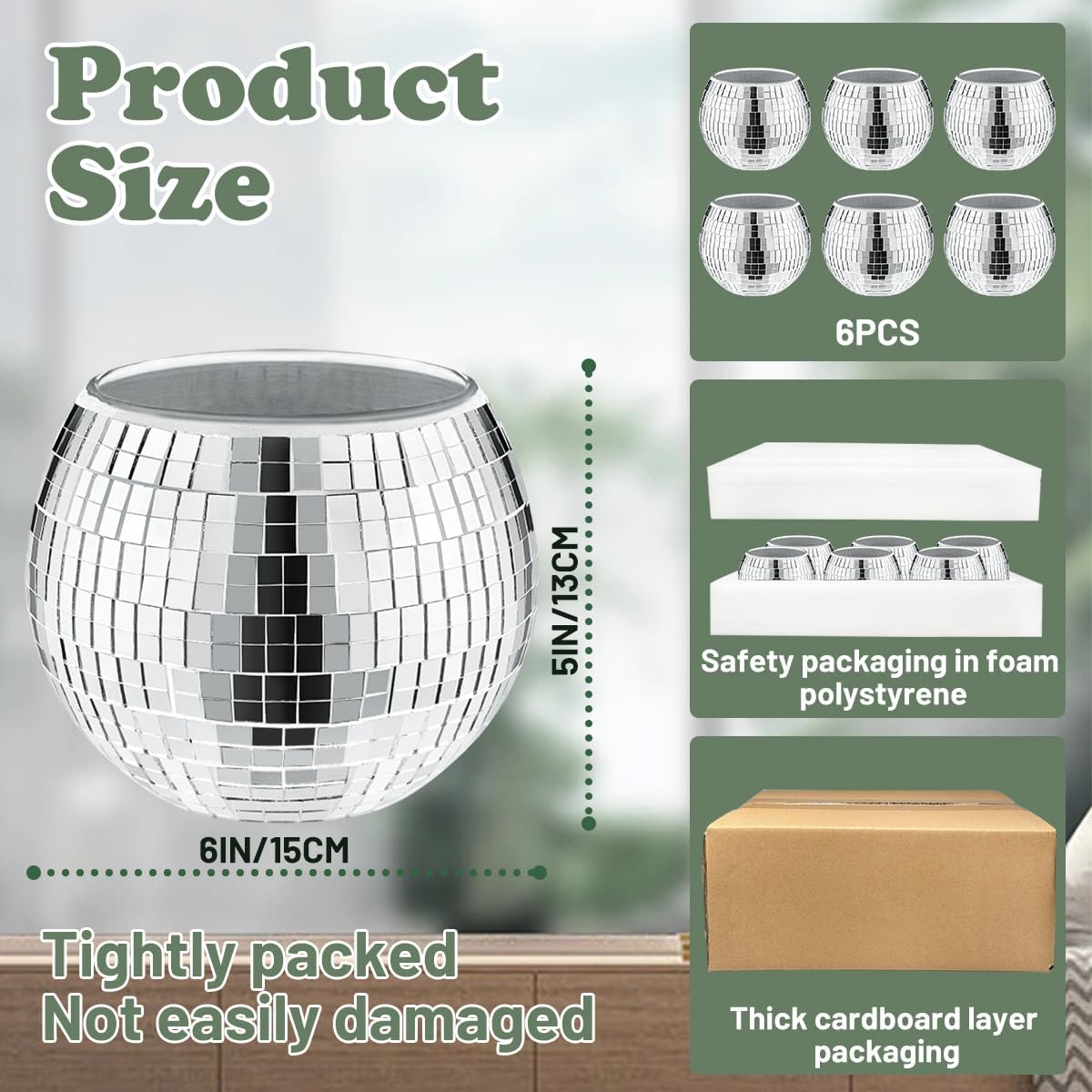 • Package Contents:Contains 6 disco ball vase, the size of each one is 5*6 inches, more than enough quantity for you to decorate any scene; Separated in bubble wrap bags to minimize the degree of damage.