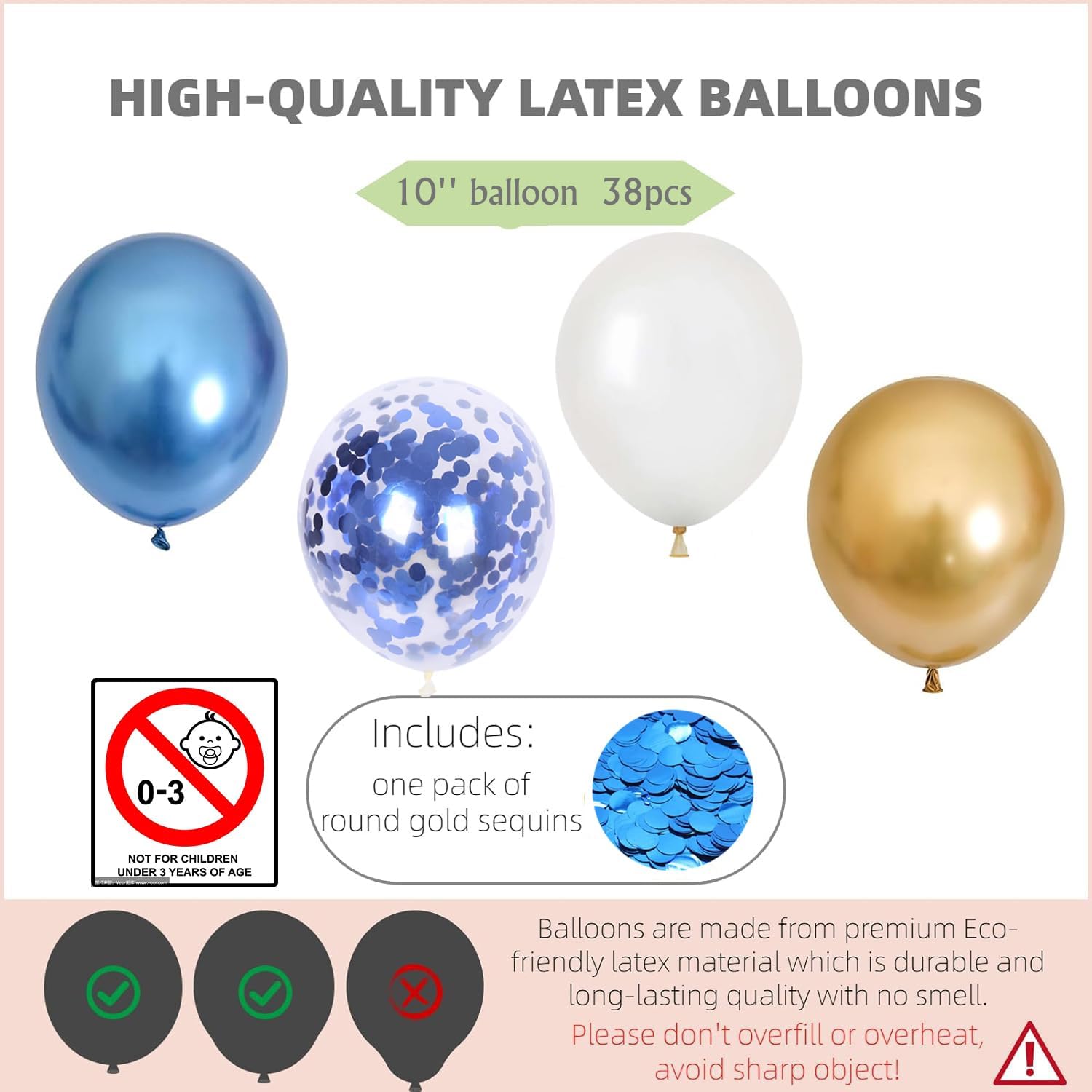 • PRECAUTIONS - When you receive these dark color balloons, the color before inflation generally looks black, and the color after inflation is exactly the color you want. Please do not over-inflate the balloon, avoid sunburn, overheating, sharp objects and excessive friction.