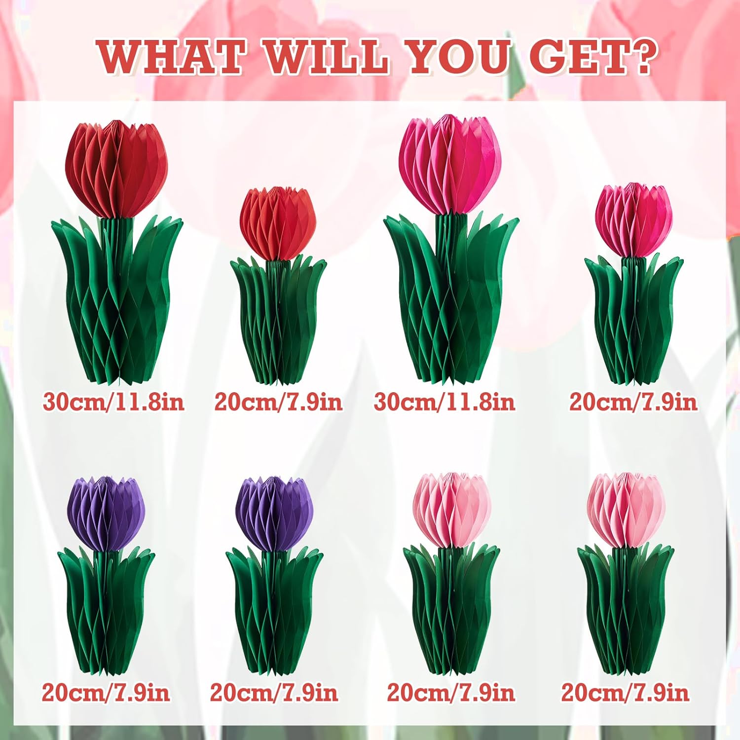• Vibrant Colors: Featuring bright and vibrant hues, these tulip honeycomb decorations will enhance any spring-themed event or celebration.