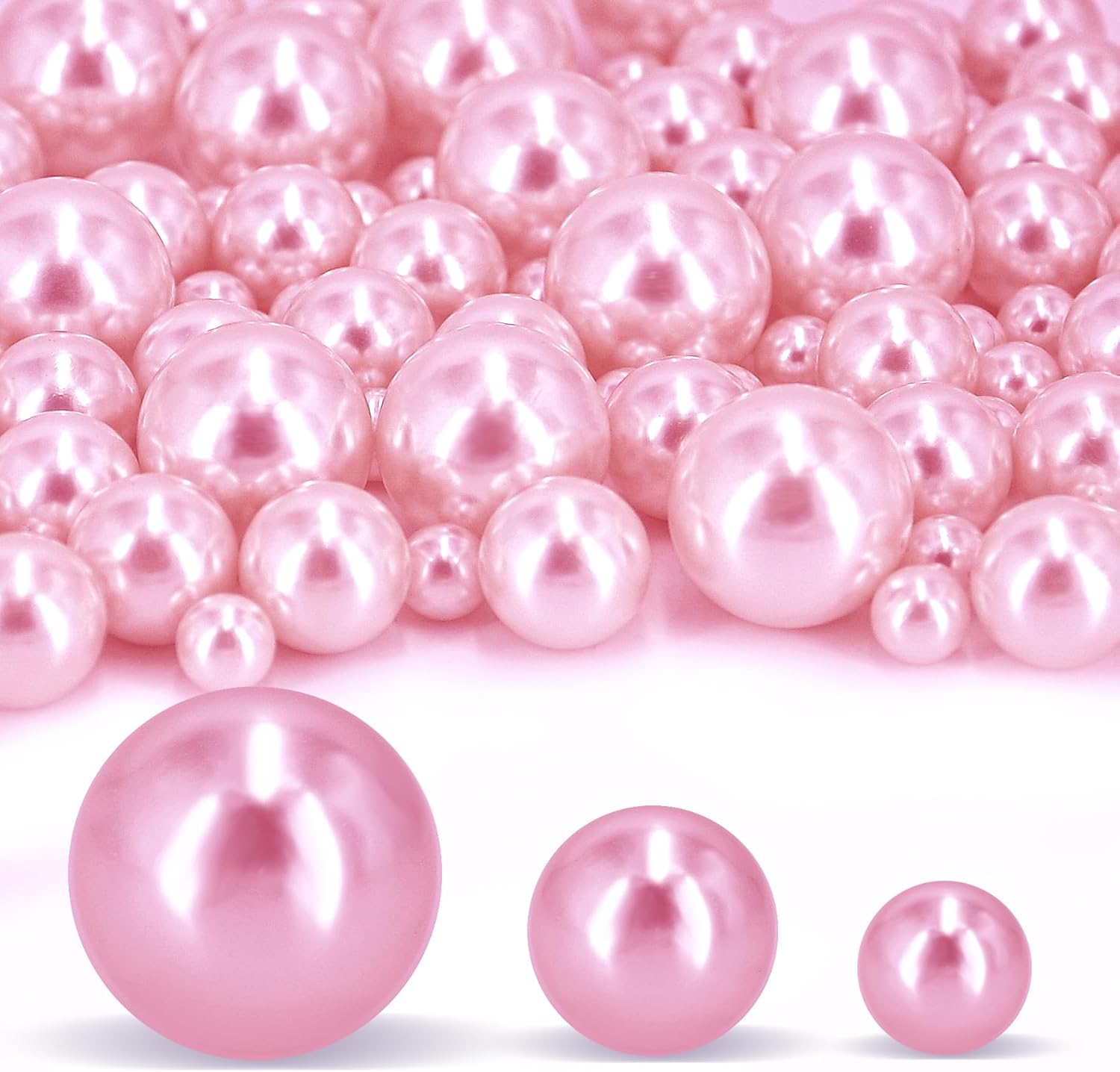180PCS Pink Beads for Centerpieces Vases, No Hole Polished Pearl Makeup Beads Mixed 8/14/20mm Sizes, Pearl Vase Fillers Table Scatters for Party Wedding Decor