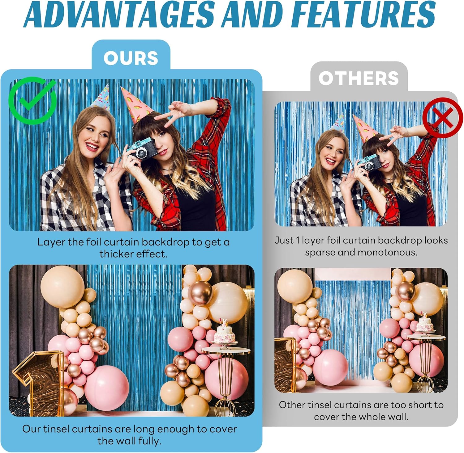 • Package includes: 10 pack blue foil fringe curtains with exquisite packaging