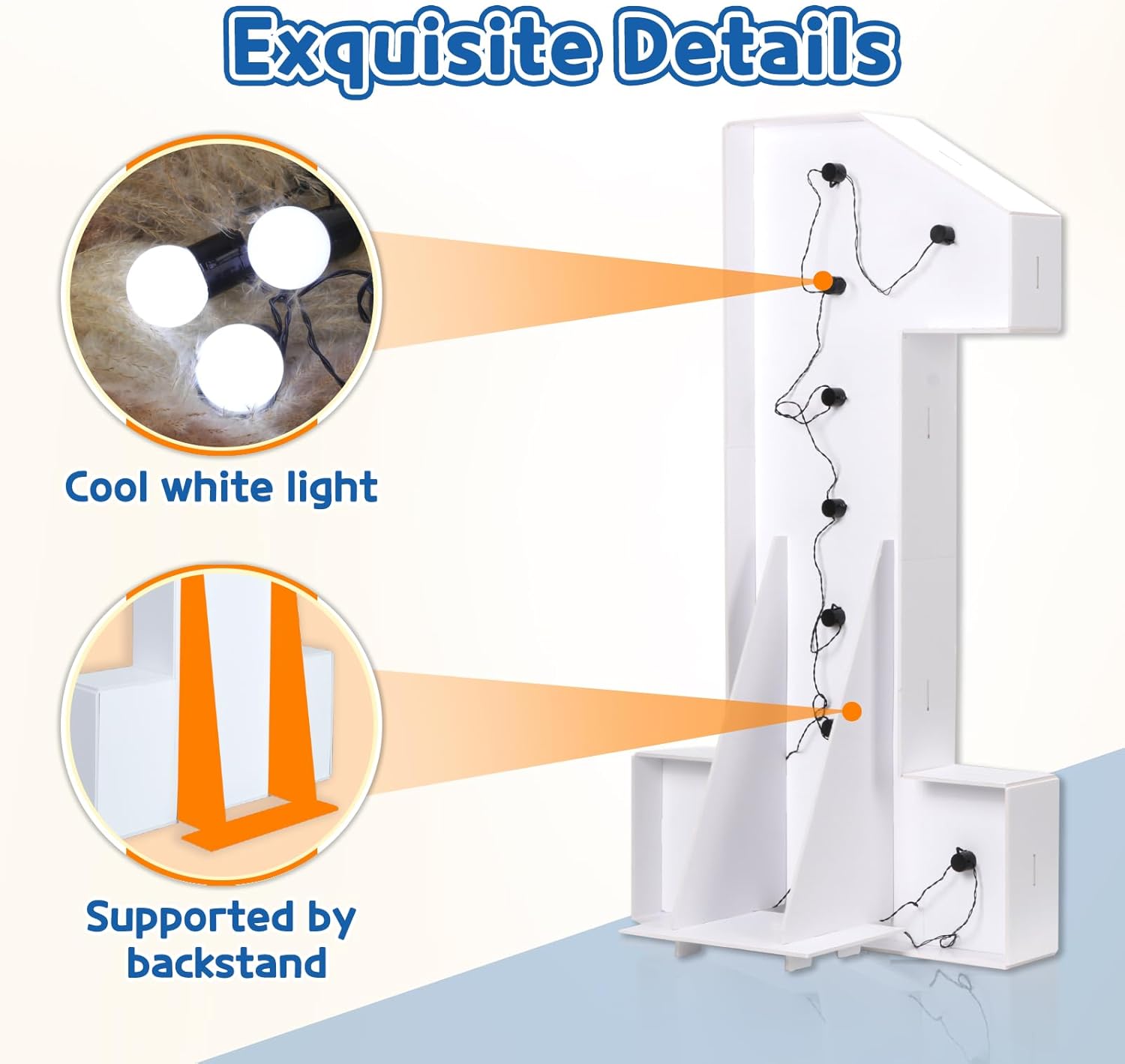 • Equipped with 2 White Light Strings: Large marquee numbers include matching light strings, so you can say goodbye to the annoyances of incompatible light strings.