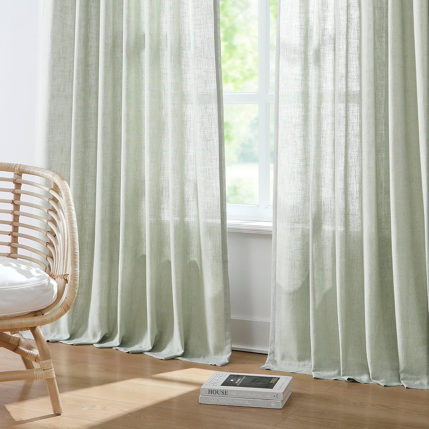 Vision Home Light Green Pinch Pleated Semi Sheer Curtains Textured Linen Blended Light Filtering Window Curtains 112 inch for Living Room Bedroom Patio Pinch Pleat Drapes with Hooks 1 Panel 60"Wx112"L