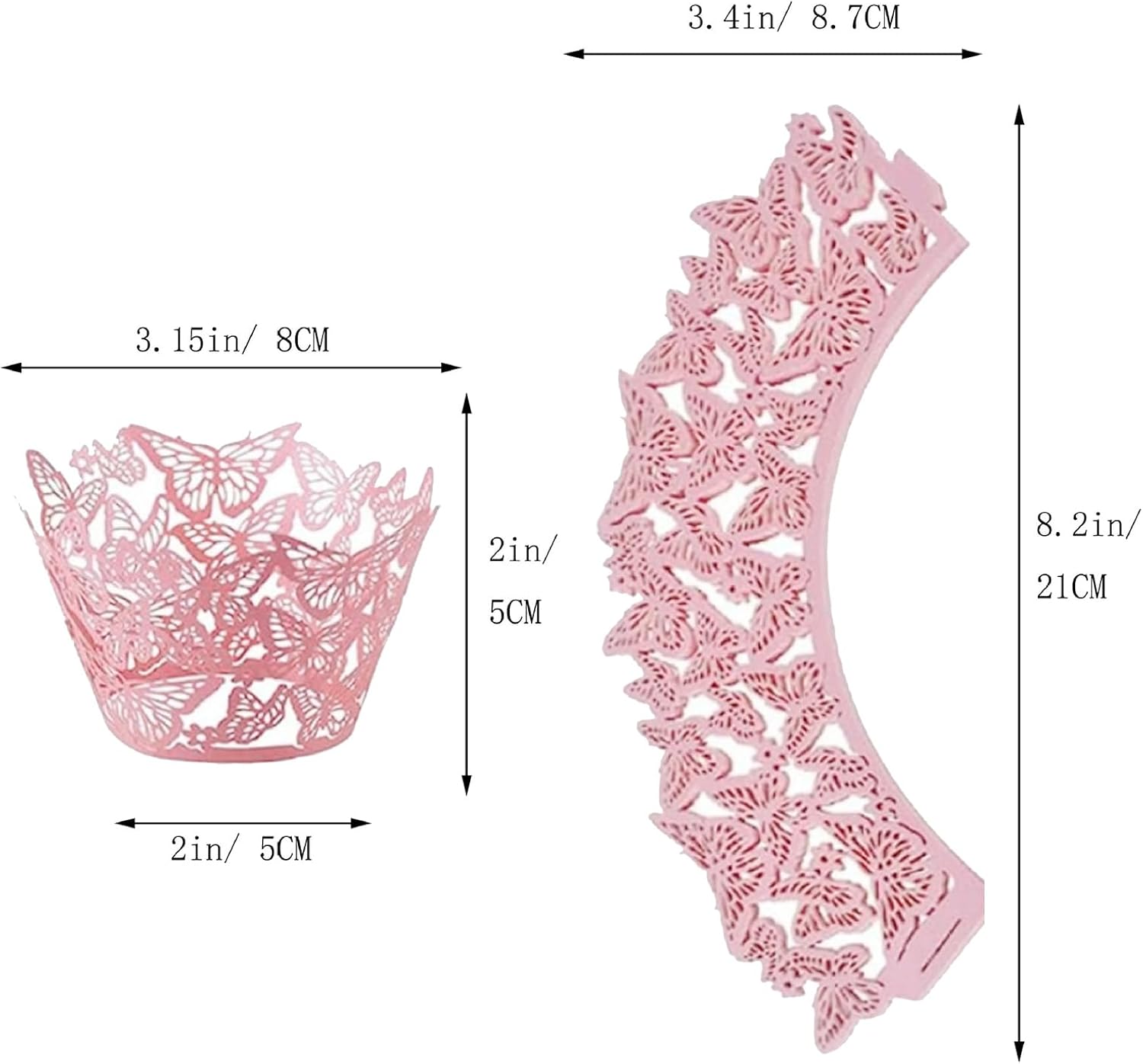• 【DECORATIVE CUPCAKE WRAPPERS】- These butterfly themed paper cupcake wrappers come in a set of 3 different colors including white, pink and purple butterflies perfect for weddings and parties.