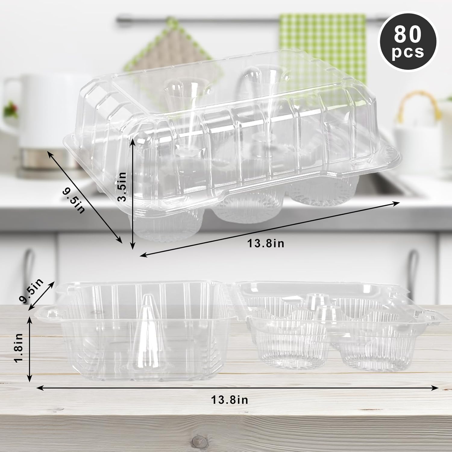 • LARGE QUANTITY: A total of 80pcs 6-compartment plastic cupcake containers are in the package, enough to meet your needs for cupcakes and muffins storage and packaging.