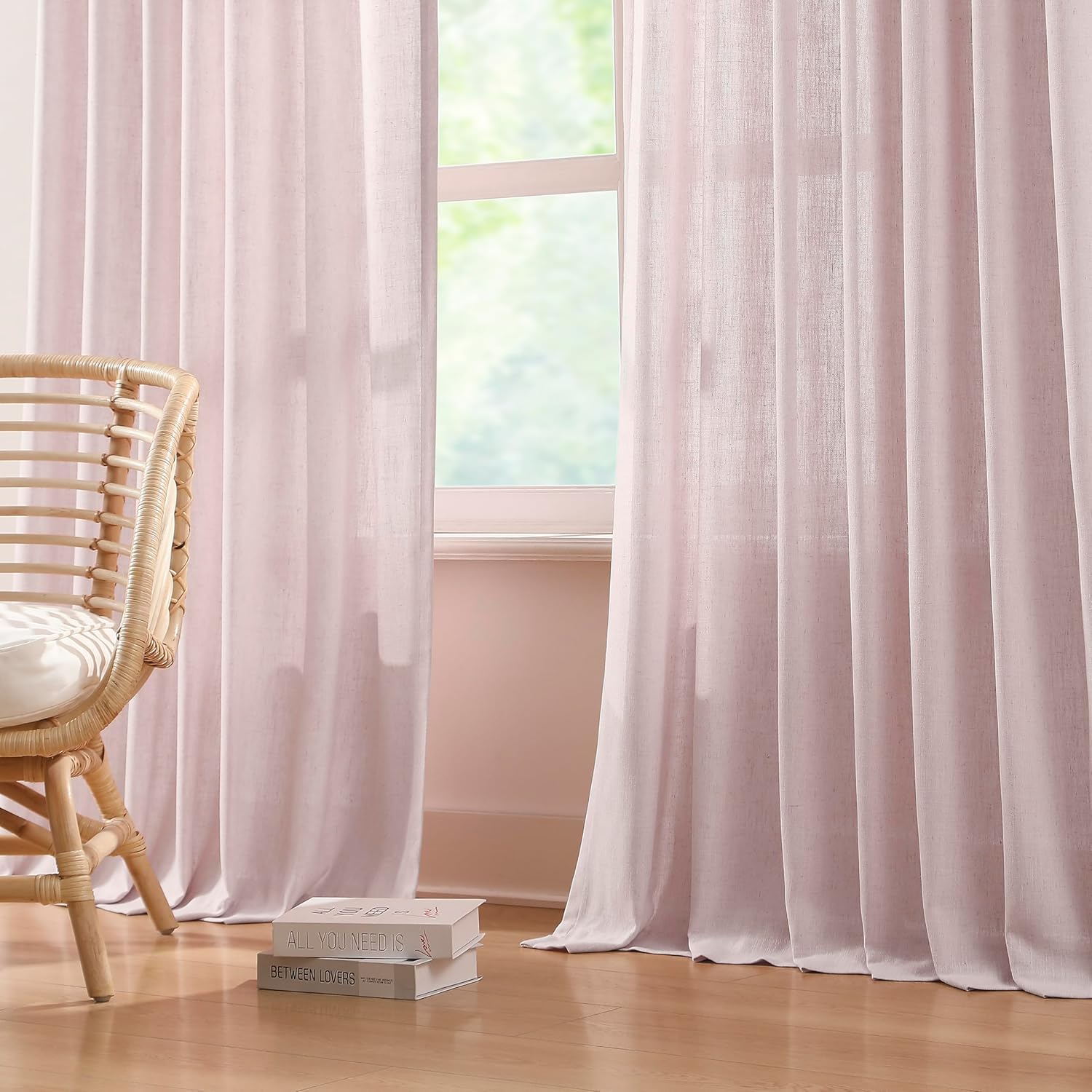 • Pinch Pleats Design:Each pale pink curtain panel with 10 pinch pleats generates modern and luxury feel.Linen curtains provide a natural,and textured look that complements a variety of interior styles.By offering linen curtains in various colors,patterns,and lengths,we can cater to customers looking for a casual yet sophisticated window treatment.Hanging these pinch pleat curtains to elevate your windows and increase the aesthetic value to any spaces,bedroom,living room,nursery,office,etc.