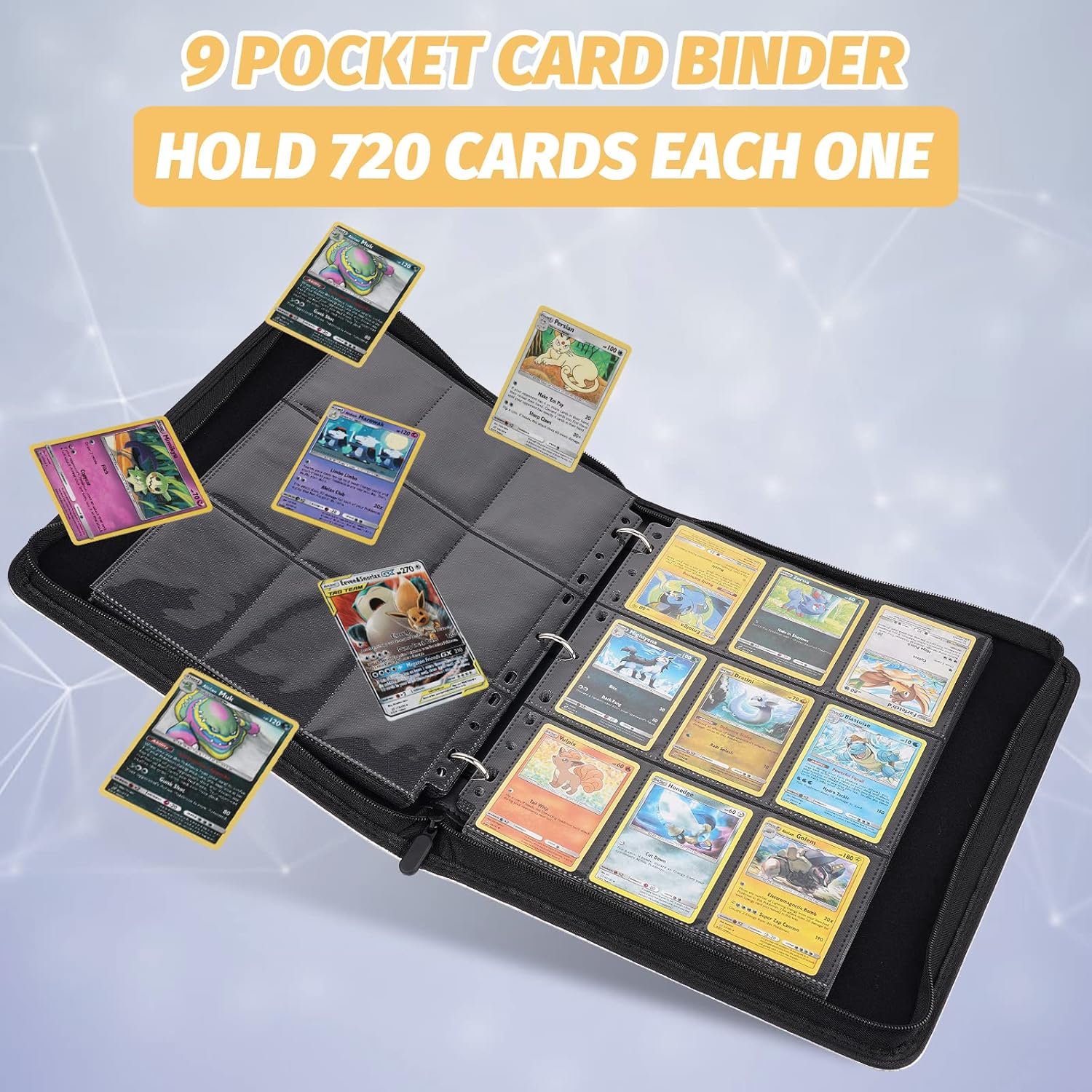 Trading Card Binder, Premium 9 Pocket Card Binder, 720 Double Sided Pocket PU Collection Binder, Collector Album, Card Holder for MTG, TCG, Sports Cards (Diamond Black)