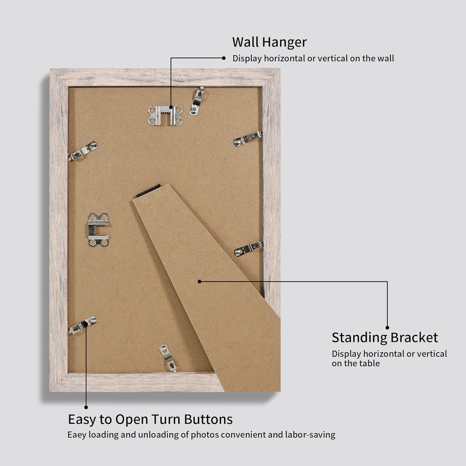 • A Variety of Display Methods: Our picture frames could be hang vertically or horizontally, placed on a desk by their easel-back, or hang on the wall with the mounted hanging hanger.