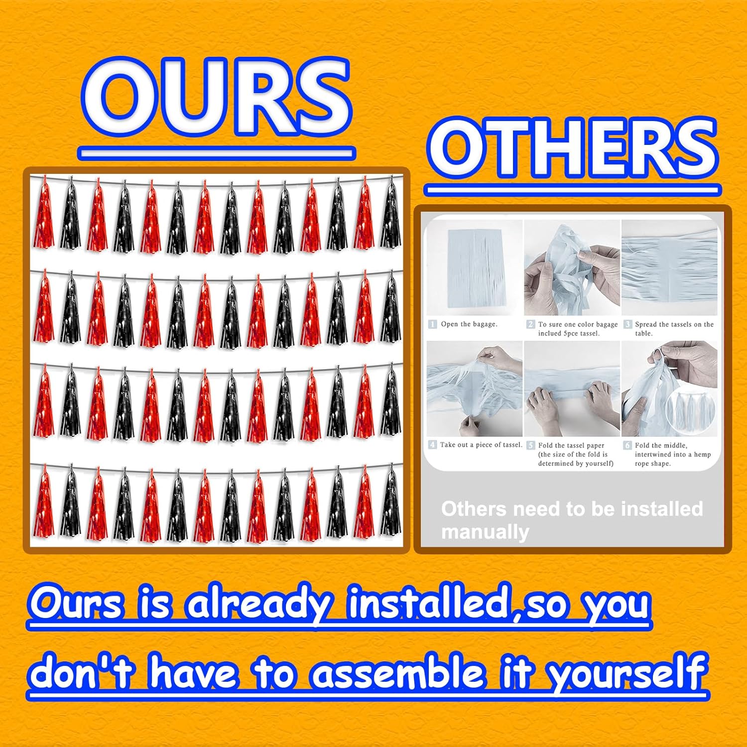 • 【Package Includes】The total length of the black red birthday tassels banner is 40 feet, divided into 4 strips, each 10 feet long. Each banner contains 15 tassels, and each tassel measures 14 inches, for birthday decorations many occasions uitable for Patriotic display, Homecoming Float, Christmas Float, ecorative metal trailers, graduation floats etc