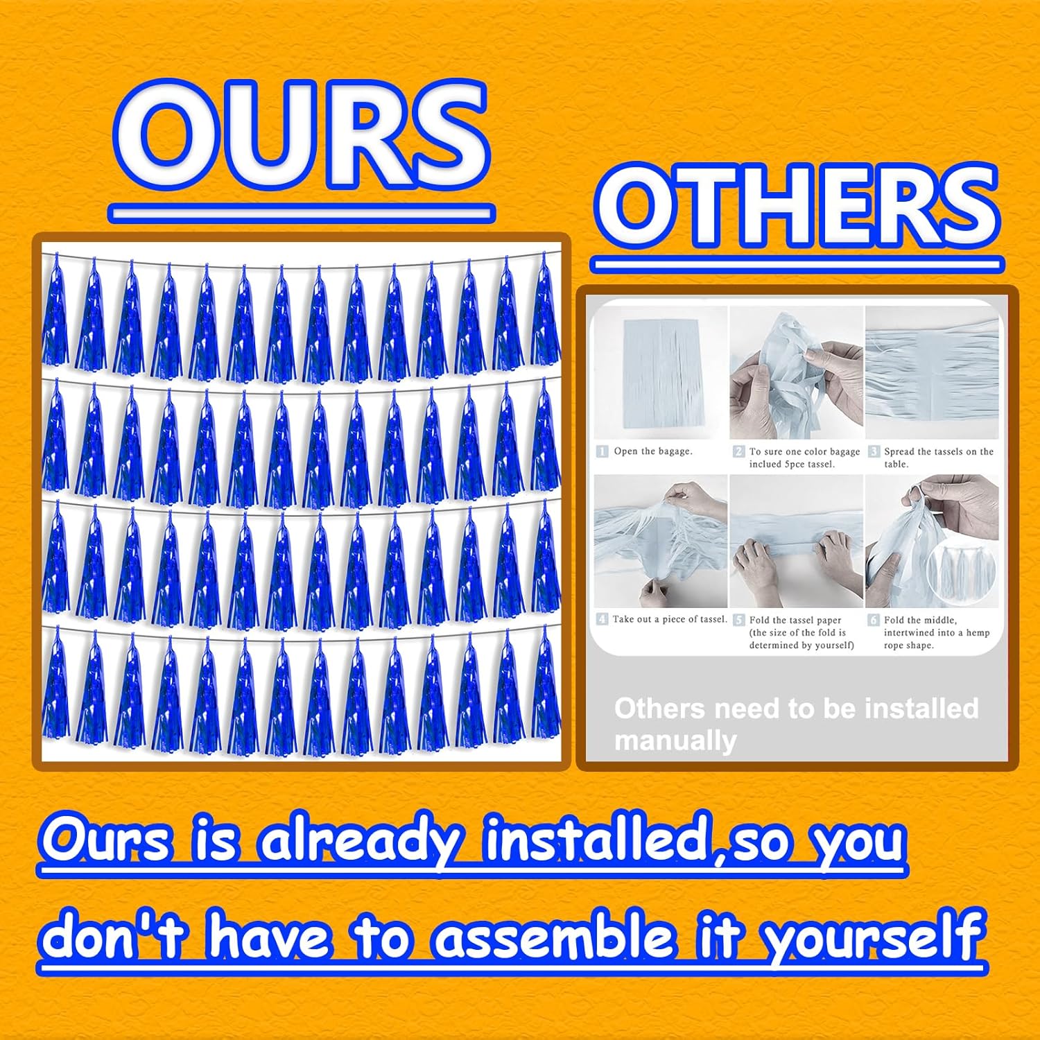 • 【Package Includes】The total length of the blue birthday tassels banner is 40 feet, divided into 4 strips, each 10 feet long. Each banner contains 15 tassels, and each tassel measures 14 inches, for birthday decorations many occasions uitable for Patriotic display, Homecoming Float, Christmas Float, ecorative metal trailers, graduation floats etc