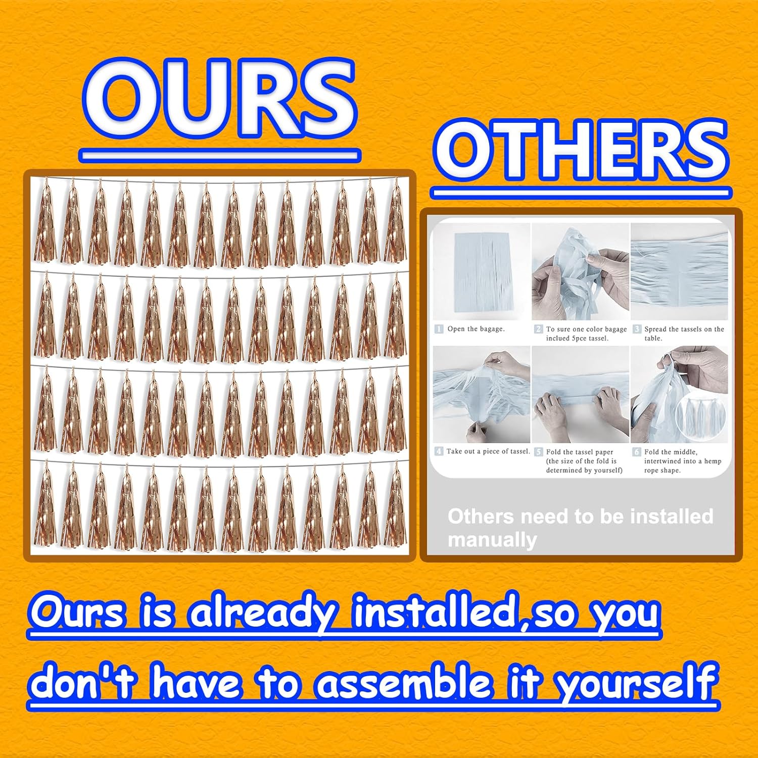 • 【Premium Reusable Tassel Material】: Our glitter fringe garland is made of high-quality PET material, with the virtue of nice craftsmanship and light weight which is safe and recyclable. And the smooth touch makes tassels easy to tidy up. They come with white ribbon for hanging, and garland tassels hang perpendicular to the string, and are adjustable to provide you with the option of spreading the tassels out or piecing them closer together.
