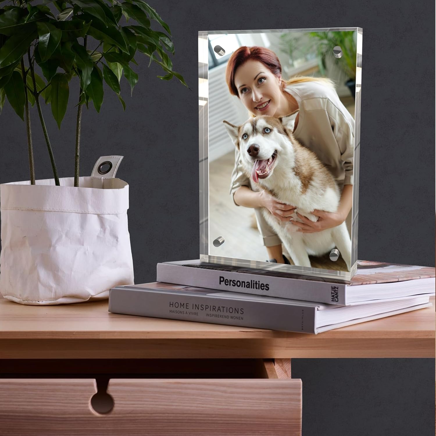 8x10 Inches Acrylic Picture Frames 1 Pack, Double Sided Magnetic Photo Frames,Free Standing on Desk or Table Clear Picture Frames