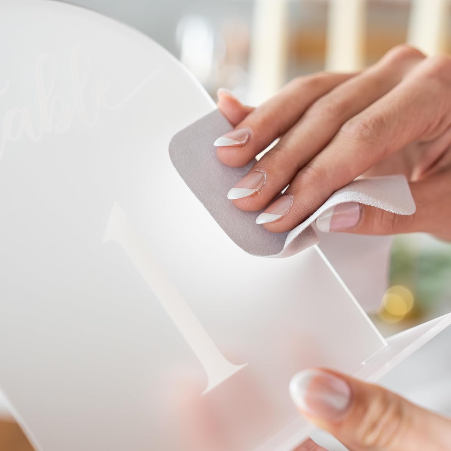 • โžก๏ธ ๐™€๐˜ผ๐˜พ๐™ƒ ๐™Š๐™‰๐™€ ๐™ƒ๐˜ผ๐™Ž ๐˜ผ ๐™‹๐™๐™Š๐™๐™€๐˜พ๐™๐™„๐™‘๐™€ ๐™๐™„๐™‡๐™ˆ: These minimalist wedding table numbers with stand come fully covered in an easy-to-peel protective film; Also, our table numbers 1-10, 1-15 and 1-20 come with a Suede Cleaning Cloth for smudges and a Storage Box