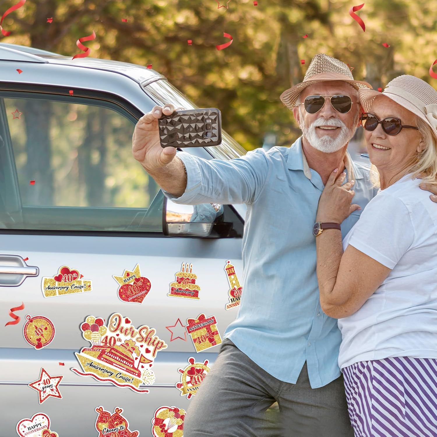 • 💌Cruise Door Magnets Decorations:You will get 16pcs of Red Gold 40th Anniversary Cruise Door Magnets.These 40th Anniversary Cruise Door Magnets have "40th Anniversary Cruise" and many shapes.With these beautiful 40th anniversary magnets decorations, they further set off a atmosphere of 40th anniversary.
