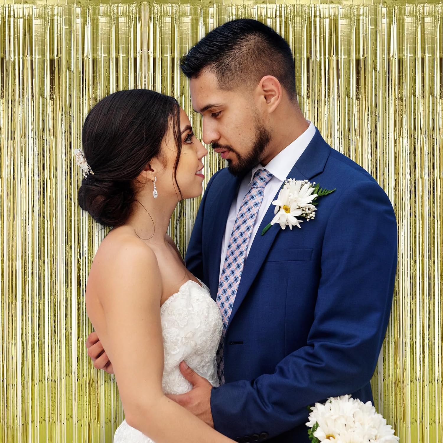 • 【Ideal Party Decoration】Show off your creativity and make your party stand out by using these light gold foil fringe curtains to decorate your party. You can hang them on a door or wall as a surprise entrance to the party, or pair them with LED lights, balloons, and banners to create a shiny party backdrop for different themes and occasions.