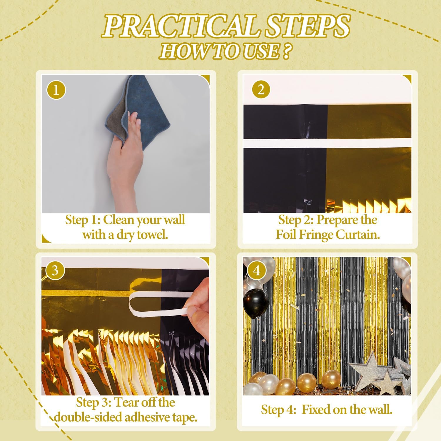 • 【3 Sets of Foil Fringe Curtains】Each package includes 3 sets of 3.3x8.2 ft foil fringe curtains, providing enough length to decorate your party with ease. Perfect for creating a stunning backdrop for any occasion.