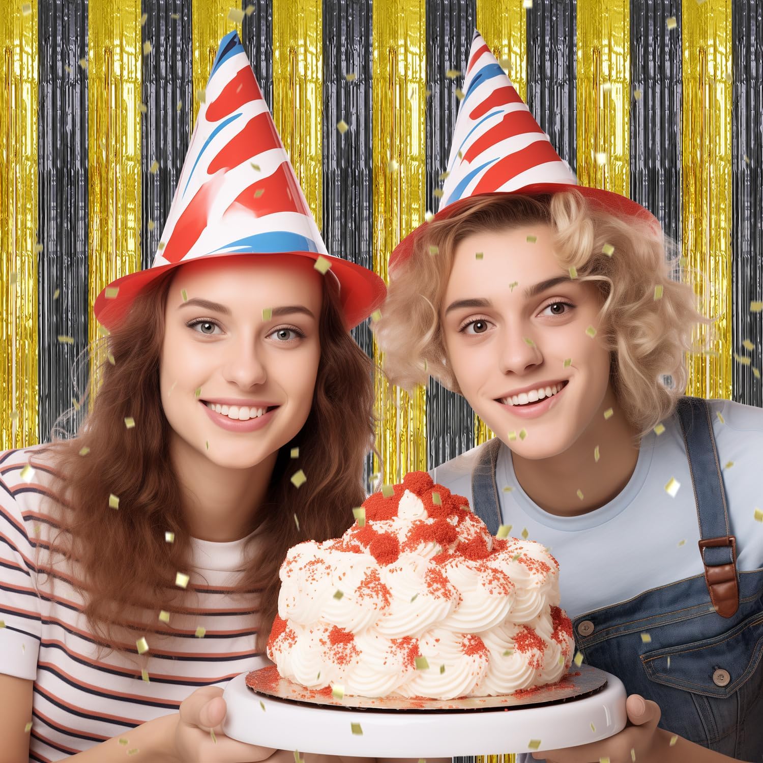 • 【Shiny Metallic Tinsel Material】Made from high-quality tinsel material, this foil fringe backdrop adds sparkle and glamour to any party or celebration. The foil surface reflects light beautifully and elevates the ambiance of your event.