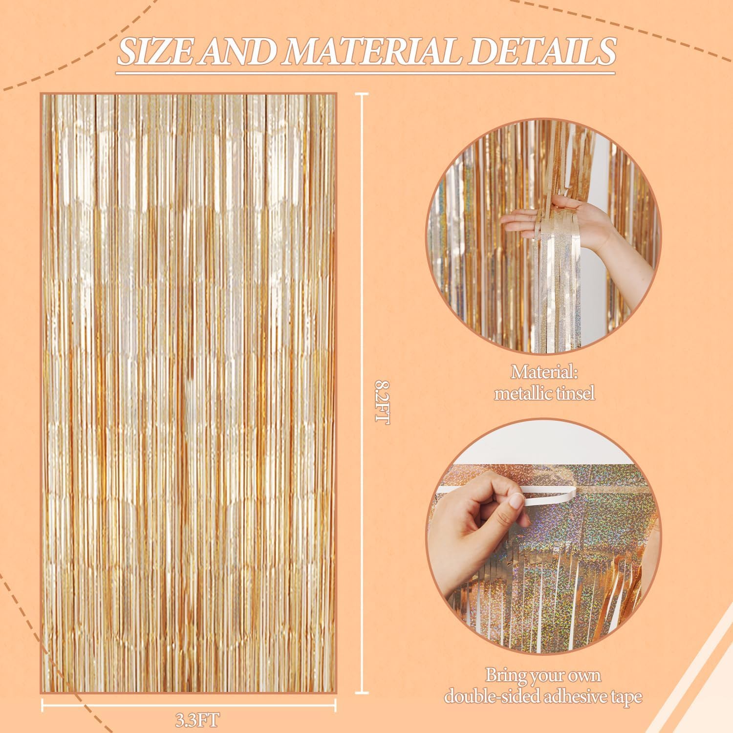 • 【3 Sets of Foil Fringe Curtains】Each package includes 3 sets of 3.3x8.2 ft foil fringe curtains, providing enough length to decorate your party with ease. Perfect for creating a stunning backdrop for any occasion.