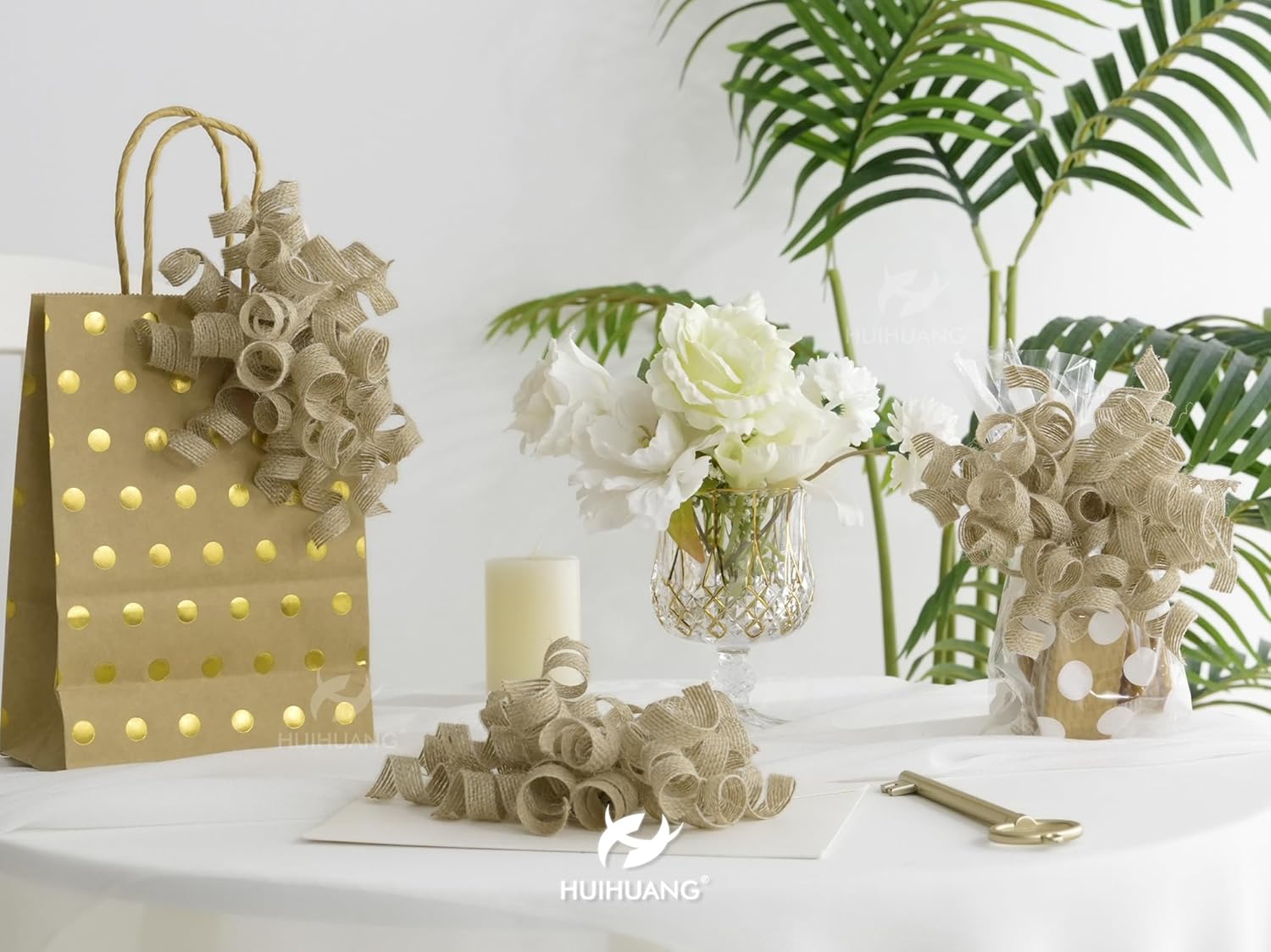 • WIDE APPLICATIONS: Burlap bows is the perfect finishing touch to any gift packaging, you can create a fancy package easily, enhance the look of party favor bags or boxes at events like weddings, birthdays, and baby showers, for holiday ornaments, wine bottles, favors bags