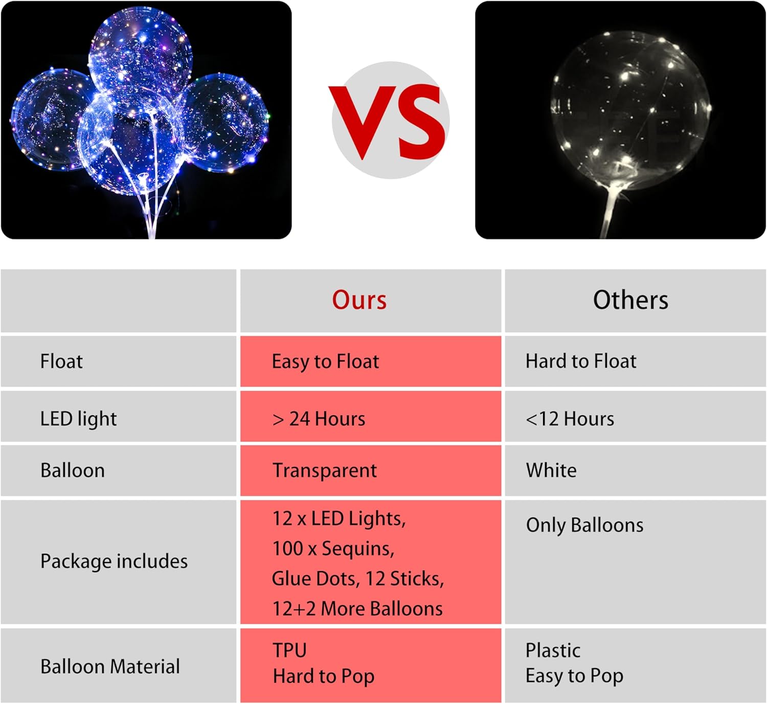 • ALL NEEDS INCLUDED - Our light up balloons include 12+2 balloons and 12 colorful string lights that are easy to assemble. The led balloon lights we offer ensure that your decorations remain bright and beautiful for hours, enhancing the party atmosphere from start to finish