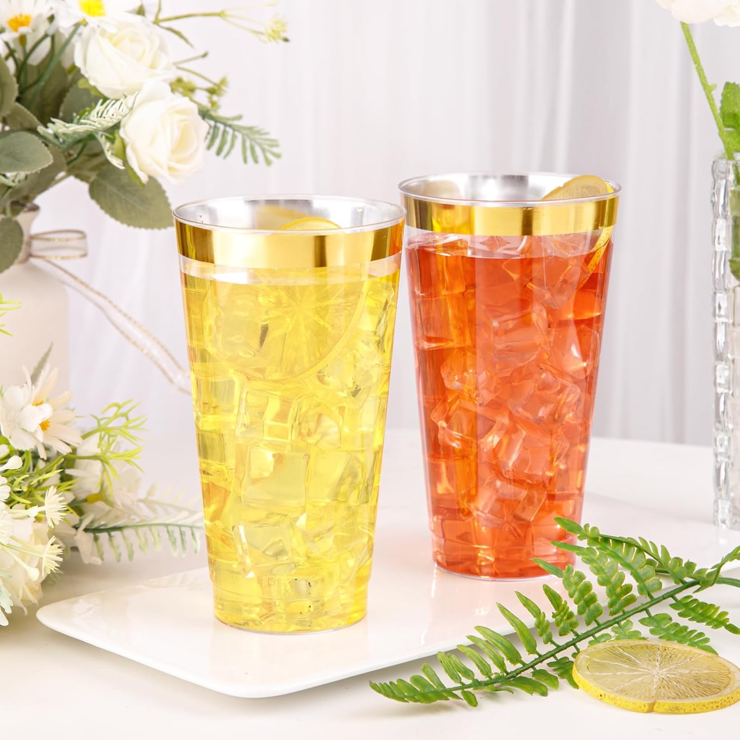 • Elegant Design: Our gold rimmed plastic cups are use the classic design with a decorative polished gold rimmed. These gold party cups will definitely give a deep impression for your guests at the event.