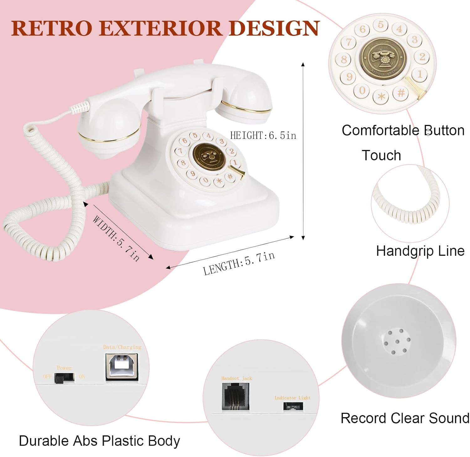 Audio Guest Book Wedding Phone, Retro Audio Phone Guestbook with Clear Voice Recording for Wedding Reception, Bridal Shower, Birthday, Baby Shower, Anniversary, Engagement (White)