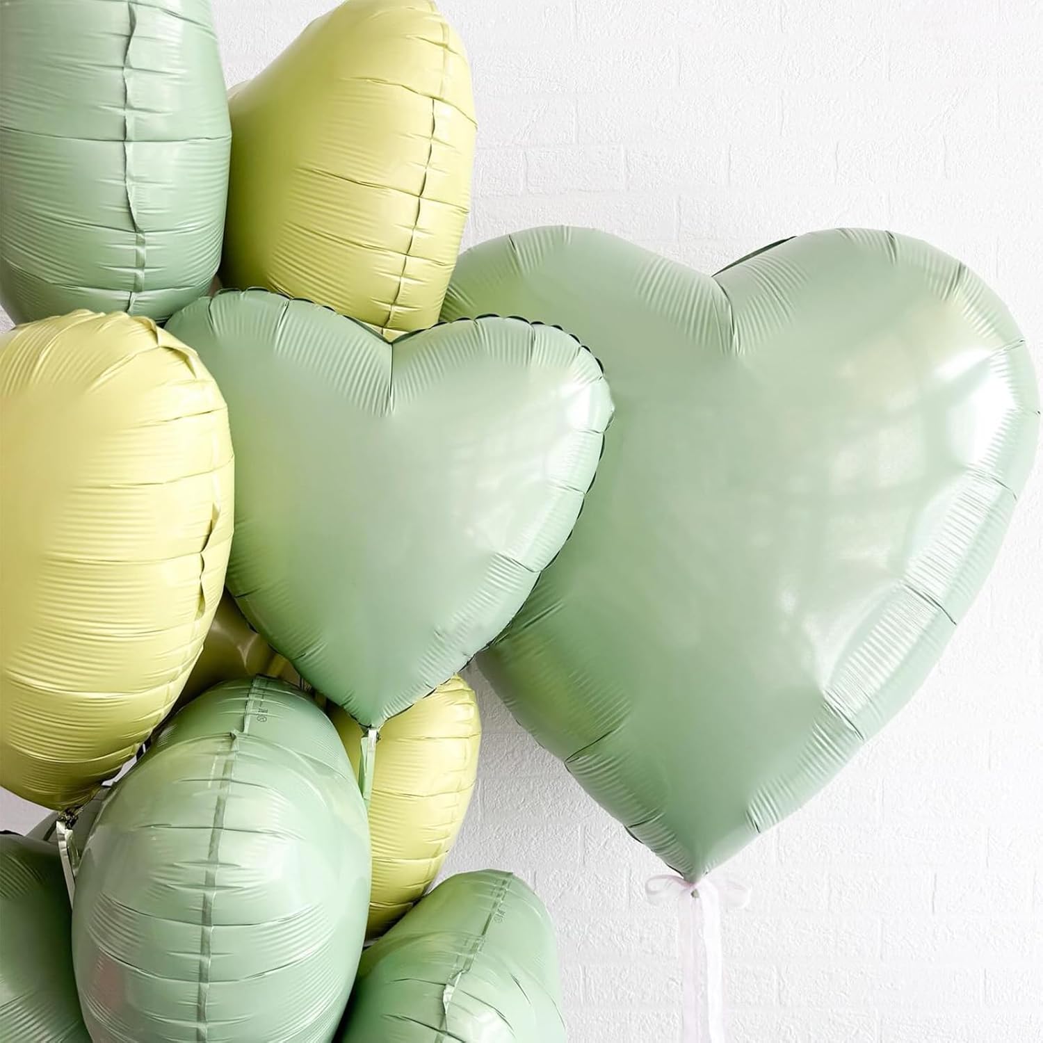 • 【12PCS HEART BALLOONS】Package include 12pcs 18Inch sage green heart foil balloons,1pc straw.Large enough to help you better decorate your party.