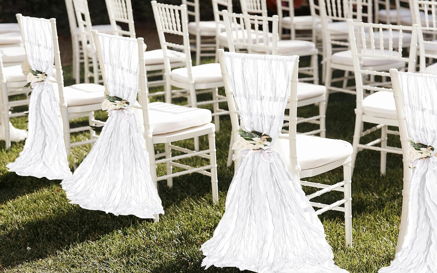 • 【Delicate Craftsmanship】White cheesecloth chair sashes adopt unique pleated workmanship, and the overall appearance is simple and elegant, creating an elegant and romantic atmosphere easily. The edges are carefully stitched to keep a perfect flowing condition, will not get broken or loose easily, can serve you for a long time