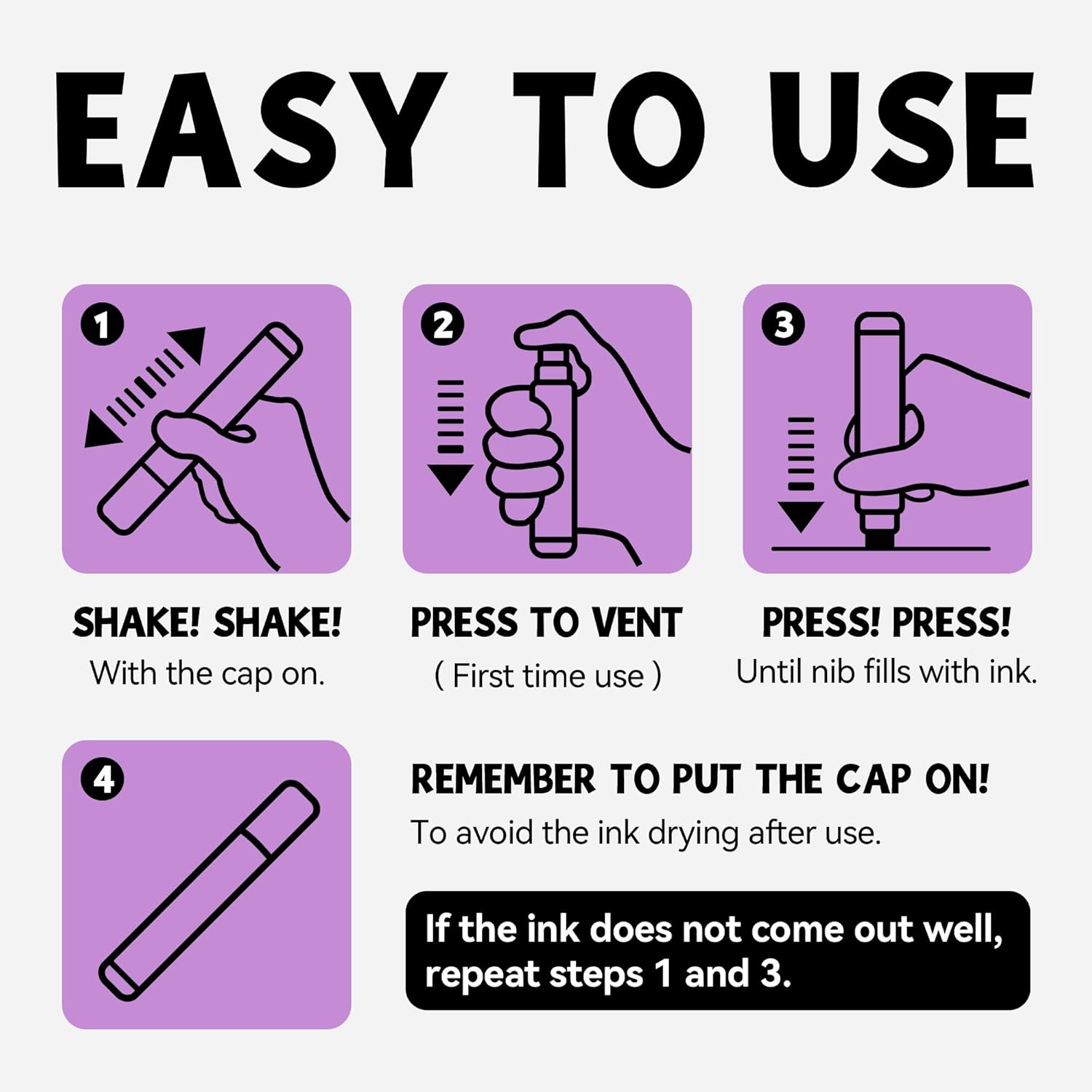 • 3-IN-1 NIB: (fine, medium, and jumbo) The thick tip permanent markers set felt wide tip is not only equipped with 3-IN-1 nib, but also allows the jumbo marker paint pen to produce smooth and even ink