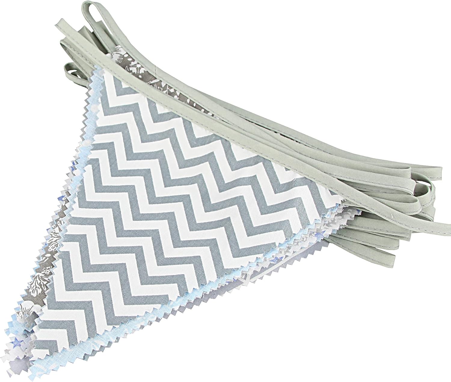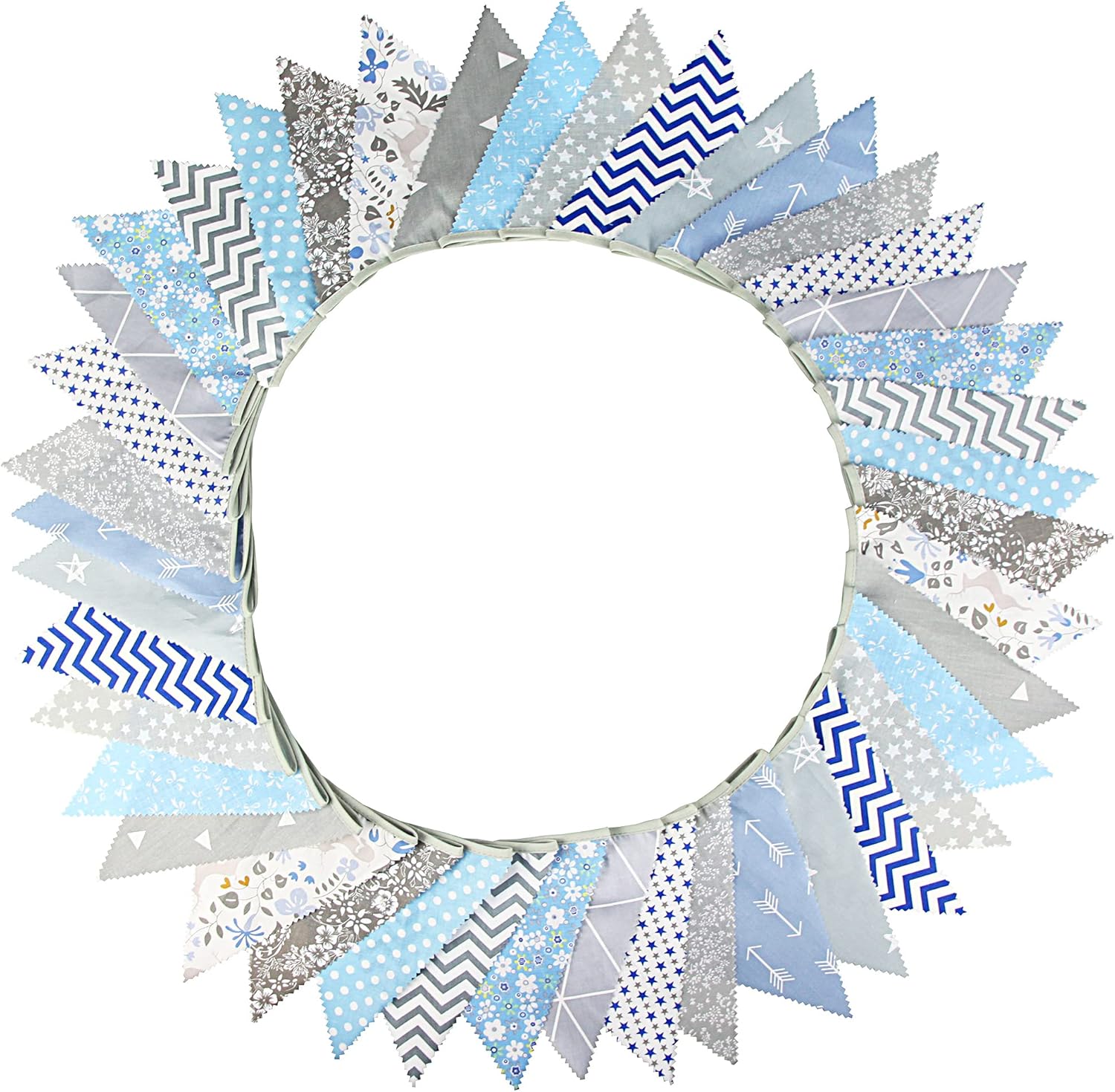 jijAcraft 39Ft Triangle Bunting Banner, 42Pcs Tea Floral Party Bunting Cotton Fabric Flags Pennant Garlands for Birthday Party, Wedding, Baby Shower, Outdoor and Home Decorations (Gray and Blue)