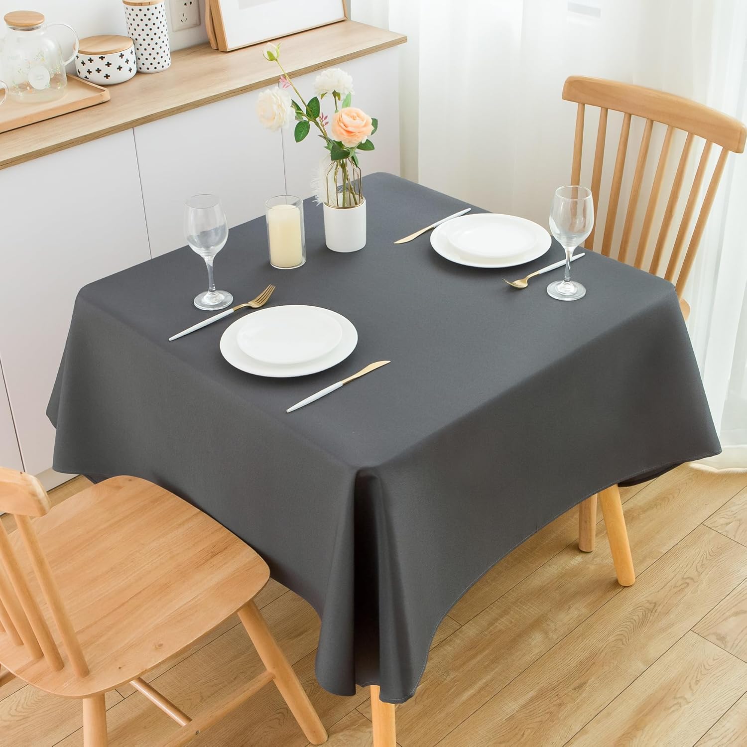 • Size Guide: Each package contains 2 PCS tablecloths. Each square grey tablecloth is 52X52 inches, recommended for square tables from 28 X 28 inches to 36 X 36 inches, such as coffee tables, tea tables, kitchen tables, garden tables and other tables as long as they fit this modern table cloth, with a droop length about 8 inches to 12 inches. There may be a slight deviation due to manual tailoring