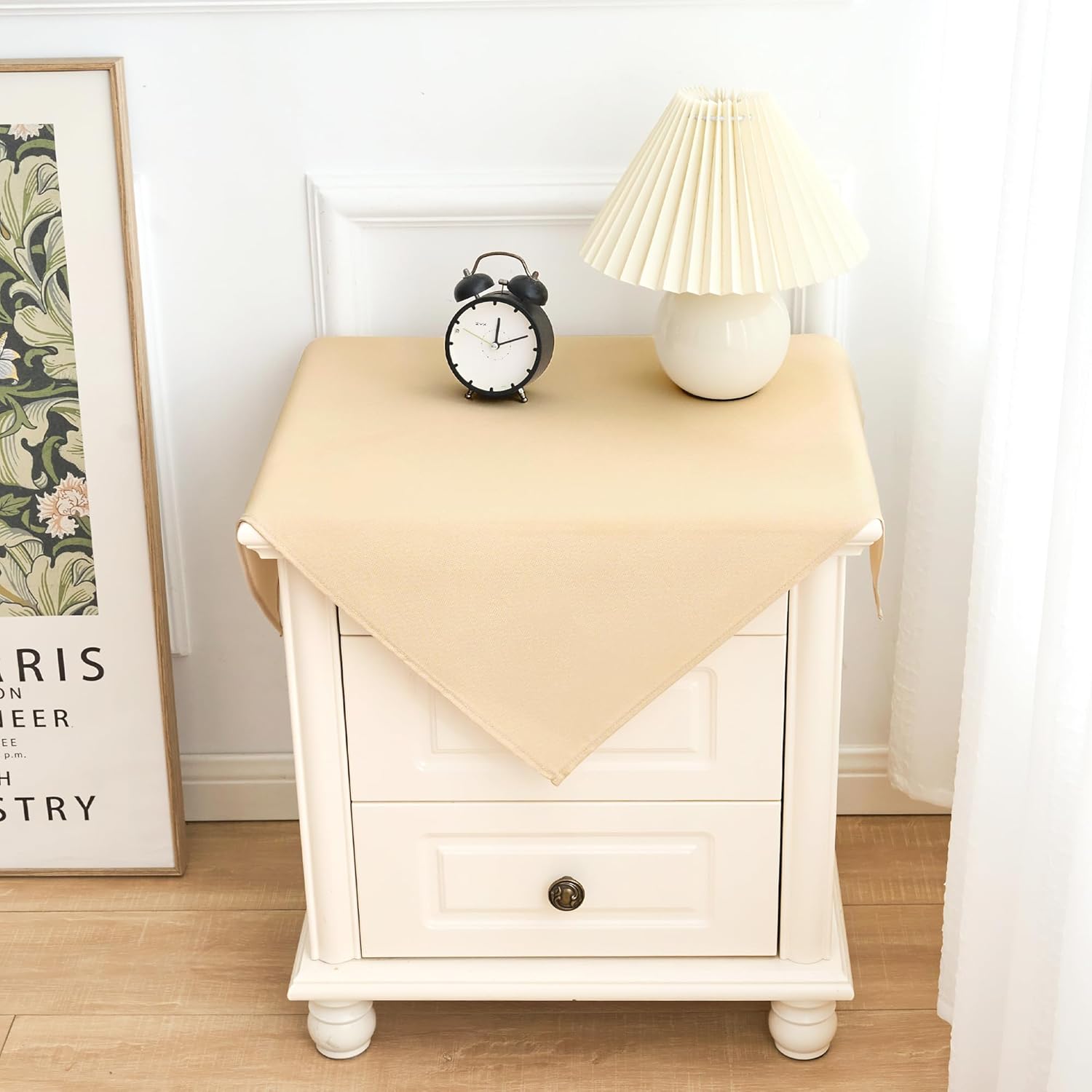• Size Guide: Each package contains 2 PCS tablecloths. Each small square beige tablecloth is 24X24 inches, recommended for small square tables from 8 X 8 inches to 16 X 16 inches, such as end tables, coffee tables, tea tables, beside tables, foldable tables, nightstands, flower stands and so on, with a droop length about 4 inches to 8 inches. There may be a slight deviation due to manual tailoring
