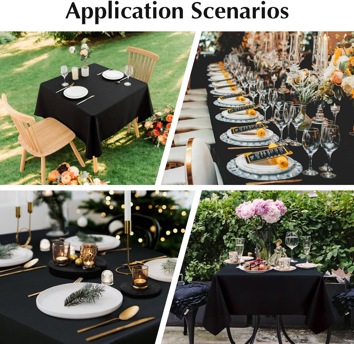 • Using Occasions: Whether it is a formal or daily occasion, whether there are indoor or outdoor activities, these simple and elegant tablecloths can be matched. You can use these dining tablecloths for weddings, parties, banquets, celebrations of various holidays, ceremonies, business settings, hotels, restaurants, dinners, etc. Besides, these square washable table cloths can also decorate your home, adding a touch of elegance and romance to your dining and everyday life