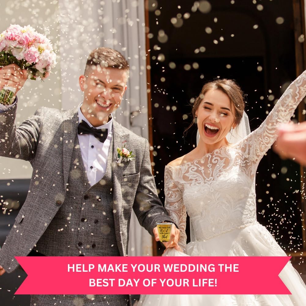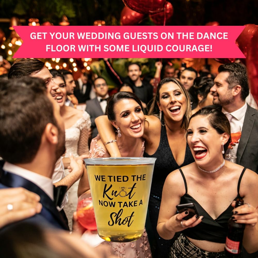 • FUN DESIGN: Proudly designed by husband-and-wife team based out of Southern California, the unique "We Tied the Knot Now Take a Shot" message with a wedding ring design in the 'o' of 'Knot' adds a playful touch to any celebration.