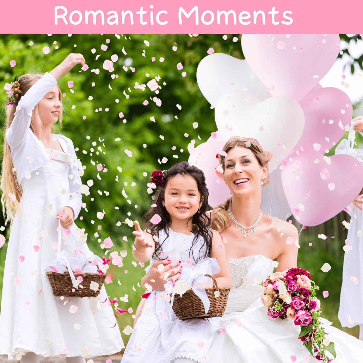 • Colorful Colors:Each pack of petals weighs about 30 grams and contains about 1500+ pieces of flower paper petals. There are two colors for you to choose from: pink & white and lime & white
