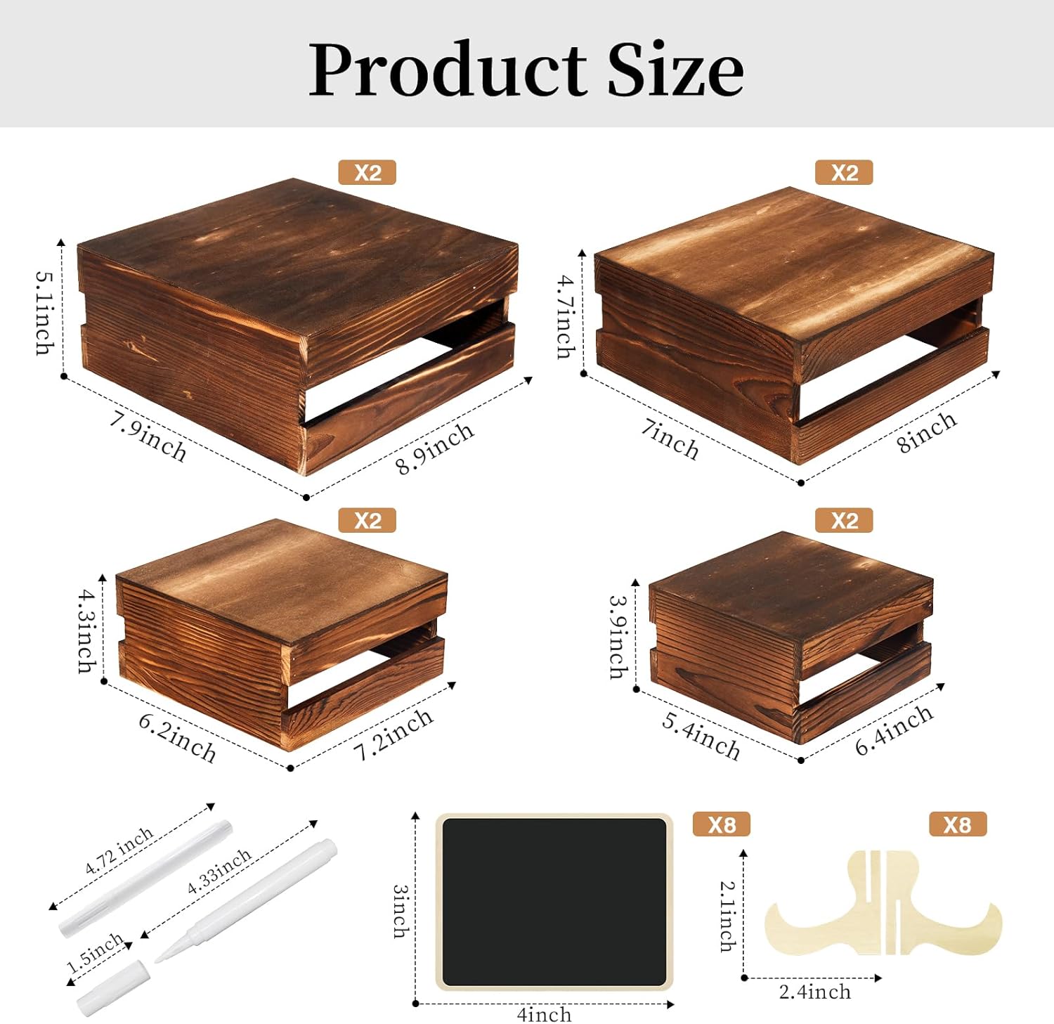 8 Pcs Buffet Risers with Mini Signs, Rustic Wood Cake Stands, Food Risers for Buffet Table, Dessert Display Stand, Wood Crates, Rustic Cake Stand for Party, Wedding, Birthday, Baby Shower, 4 Sizes