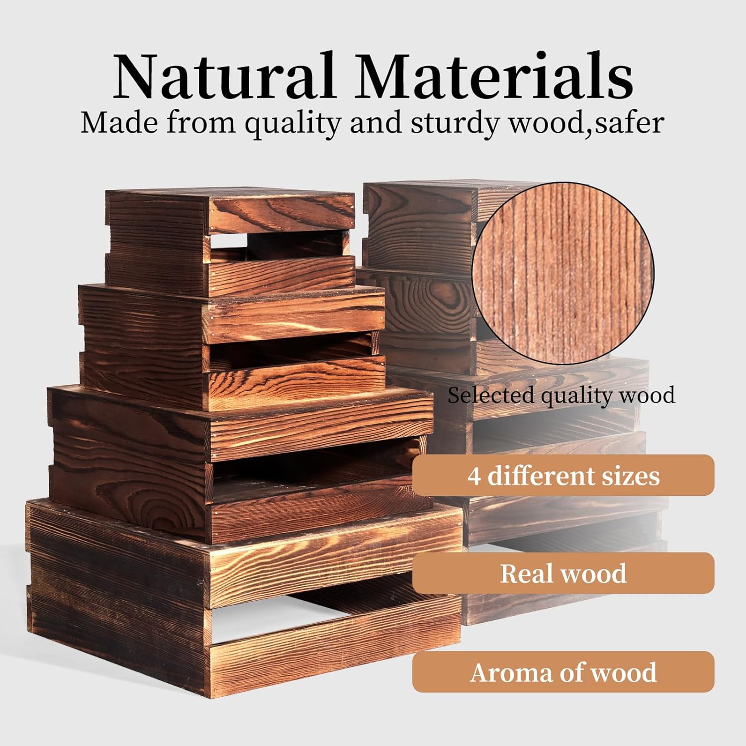 • Versatile Sizes for Layered Elegance: Our wooden stackable display boxes are carefully sized for multi-layer display, Large: 8.9x7.9x5.1 inches; Medium: 8.0x7.0x4.7 inches; Small: 7.2x6.2x4.3 inches; Extra Small: 6.4x5.4x3.9 inches, create stunning visual tiers and levels of display space that captivate every guest