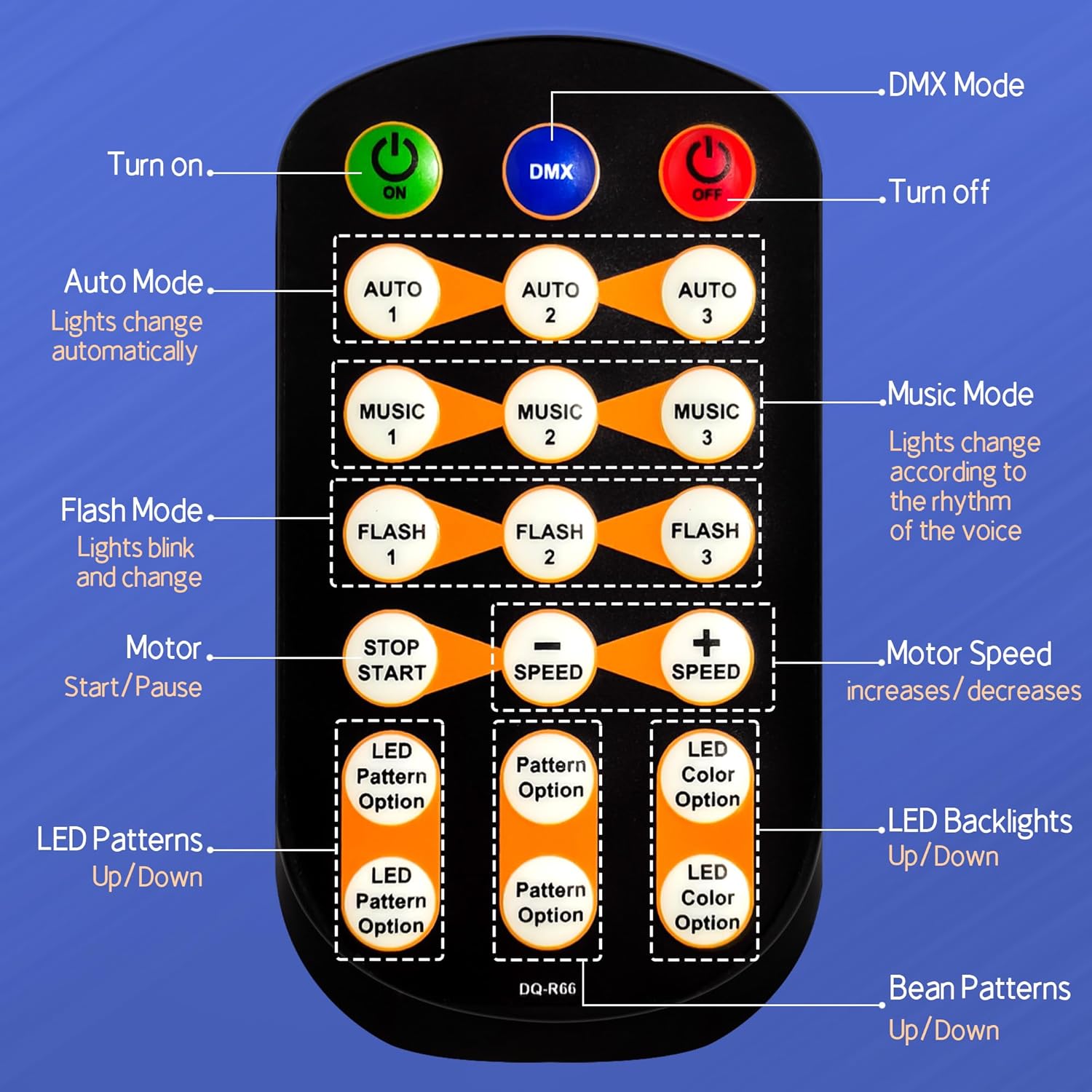 • 【Convenient Control Methods】 Take full control with ease using our convenient control options: a compact remote control, DMX 512 interface, or simple push-button operation. Explore mesmerizing light patterns that rotate and transition gracefully, adding a touch of sophistication to any venue. Our compact design conceals a powerhouse of capabilities, surprising even the most discerning users.