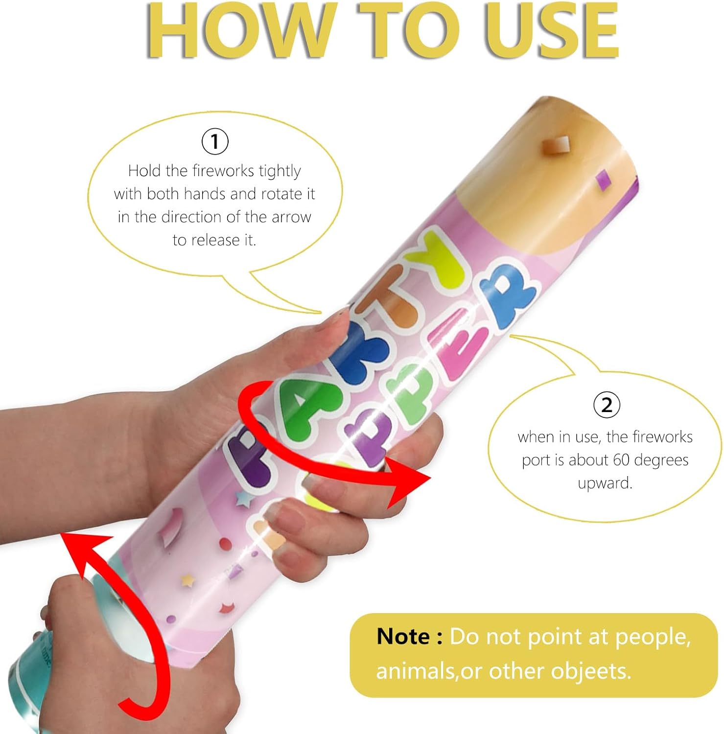 • 【Simple to Use】You just twist the bottom of the cannon with your hand and aim straight up, each party popper shoots confetti up to 15-20 feet in the air.