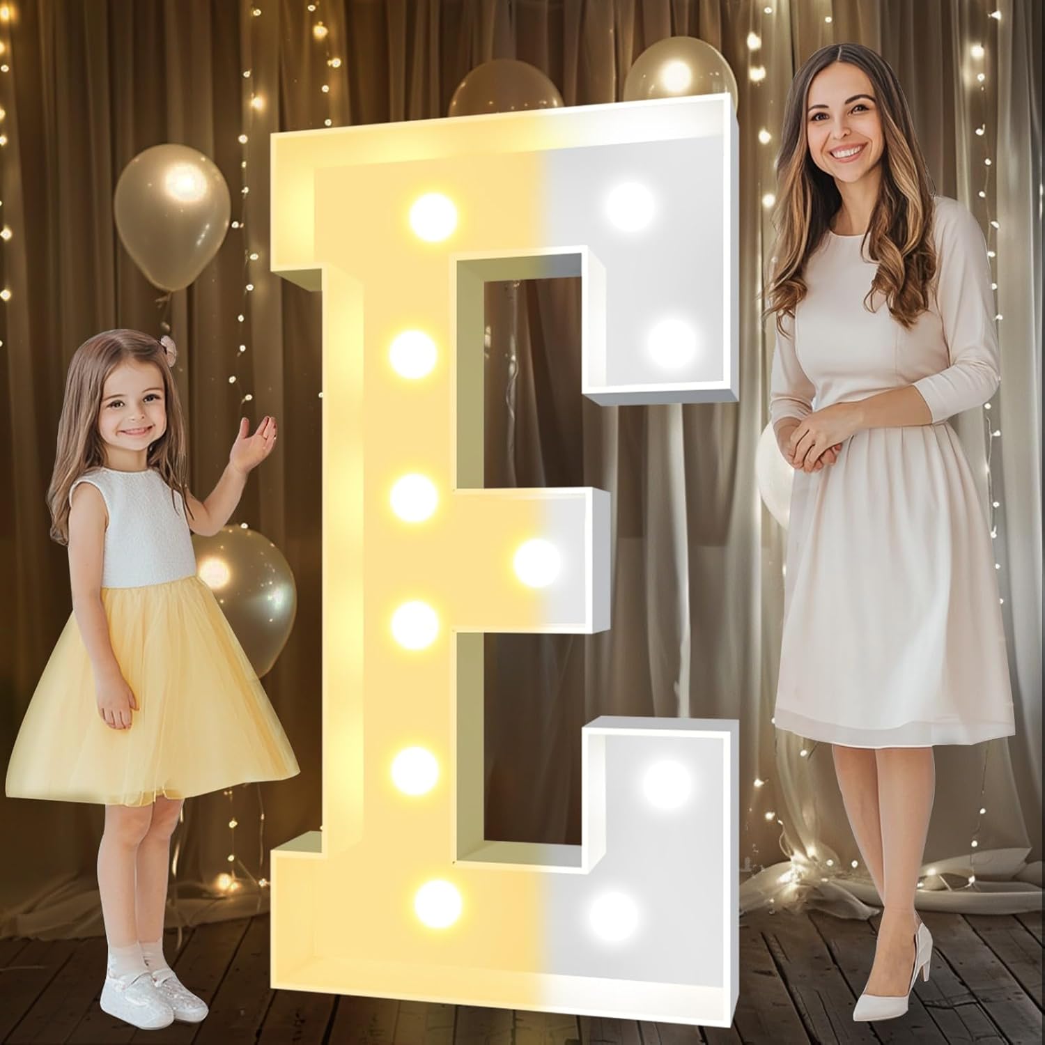 Pooqla 4 FT Marquee Light Up Letters, Cool White and Warm White Marquee Letter 4 Feet Tall, Giant LED Sign Big Mosaic Letter E for Balloons Birthday Party Anniversary Wedding Decorations
