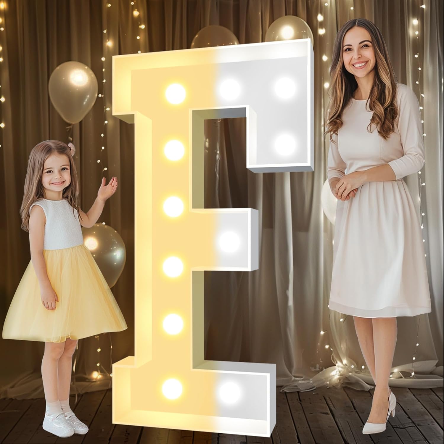 • Giant 4 Feet Marquee Letters with LED Lights: Mosaic letters designed with warm white LED string lights. Giant LED letters can be powered by 3 AA batteries (Not Included) or USB, convenient for all kinds of party decoration