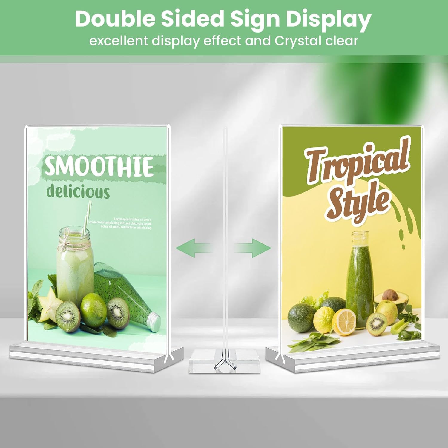 • 【Double Sided Sign Stand】This 21 Pack acrylic sign holder 4x6 is designed with a vertical double sided stand. Compared to the backward-tilted stand, the transparent menu holder adopts a vertical double-sided design, and both sides can display and protect pictures or posters, menus, etc., and are clearly visible.