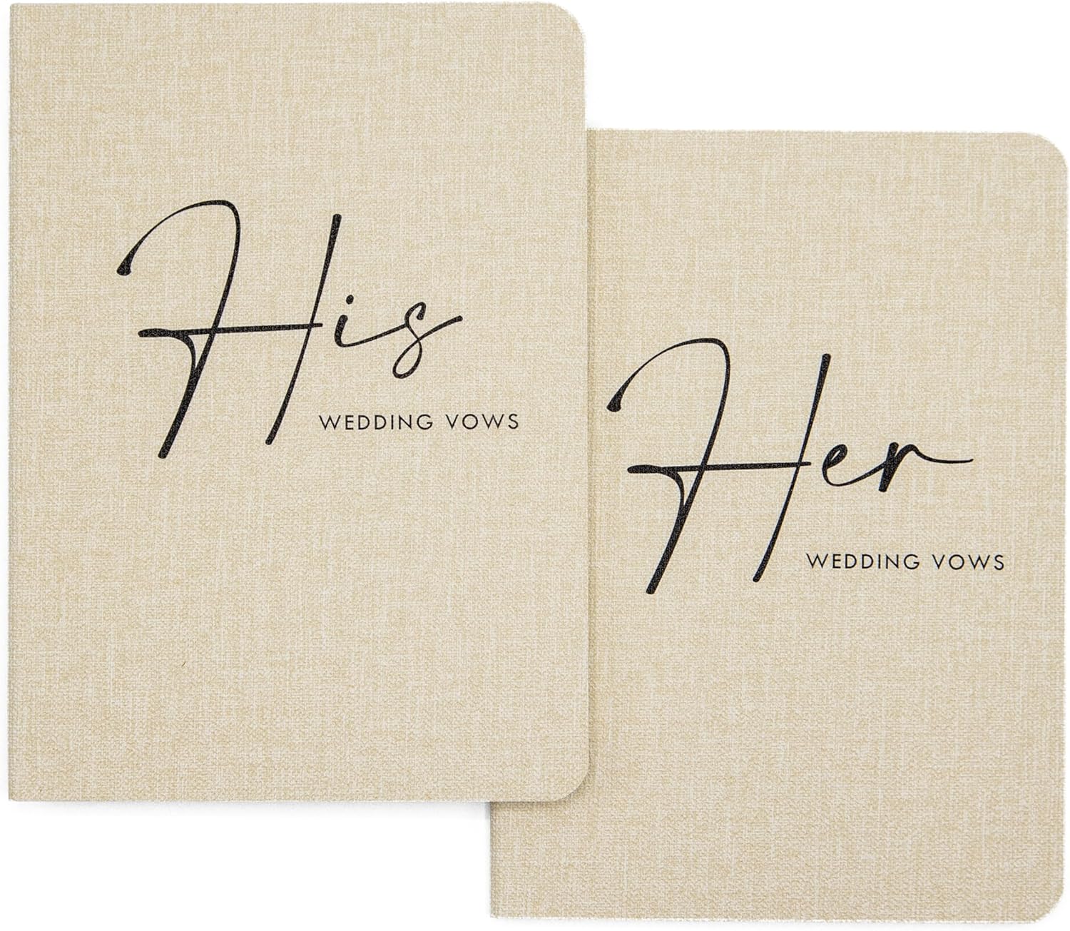 Slim Vow Books (Set of 2 - Design 4) - Soft Cream Canvas Linen Textured Cover Wedding Vow Booklets, Ceremony Speech Promise Notebook Journal, Gift for Newly Engaged Couple, 48 Lined Pages, 5.75" x 4"