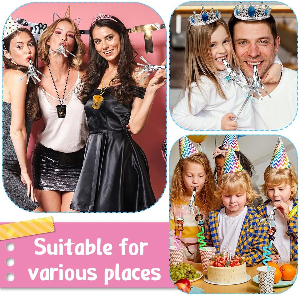 • 24 PCS Party Noise Makers: Our noise makers are the perfect addition to any celebration! With their vibrant colors and fun sounds, they are sure to liven up your sporting events, nye party, adult party, gold party, adult birthday party, 50th party, surprise party, new years party, funny party, Halloween party, and new years eve party. adult party favors noise makers for sporting events noise maker party blowers gold party favors party favors for adults party blowers for s party noise makers